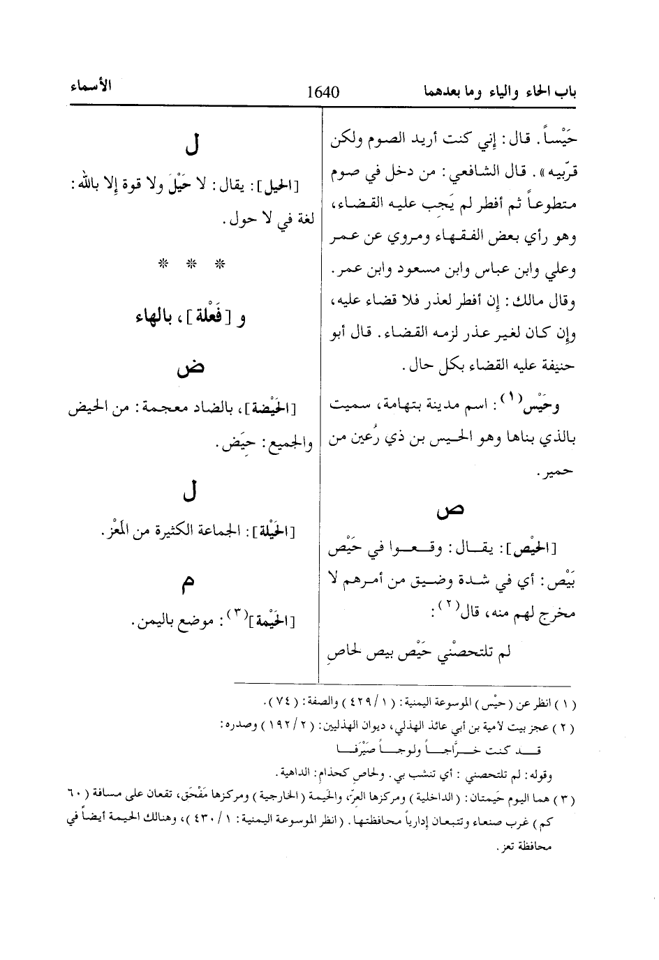 (3) هما اليوم حَيمتان: (الداخلية) ومركزها العِرّ، والحَيمة (الخارجية) ومركزها مَفْحَق، تقعان على مسافة (60 كم) غرب صنعاء وتتبعان إِدارياً محافظتها. (انظر الموسوعة اليمنية: 1/ 430)، وهنالك الحيمة أيضاً في محافظة تعز.