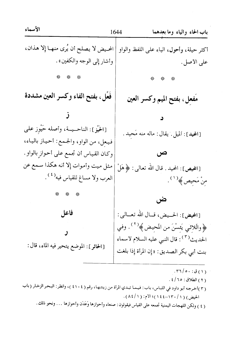 (4) ولكن اللهجات اليمنية تجمعه على القياس فيقولون: صنعاء وأحوازها وَعَدَن وأحوازها ... ونحو ذلك.