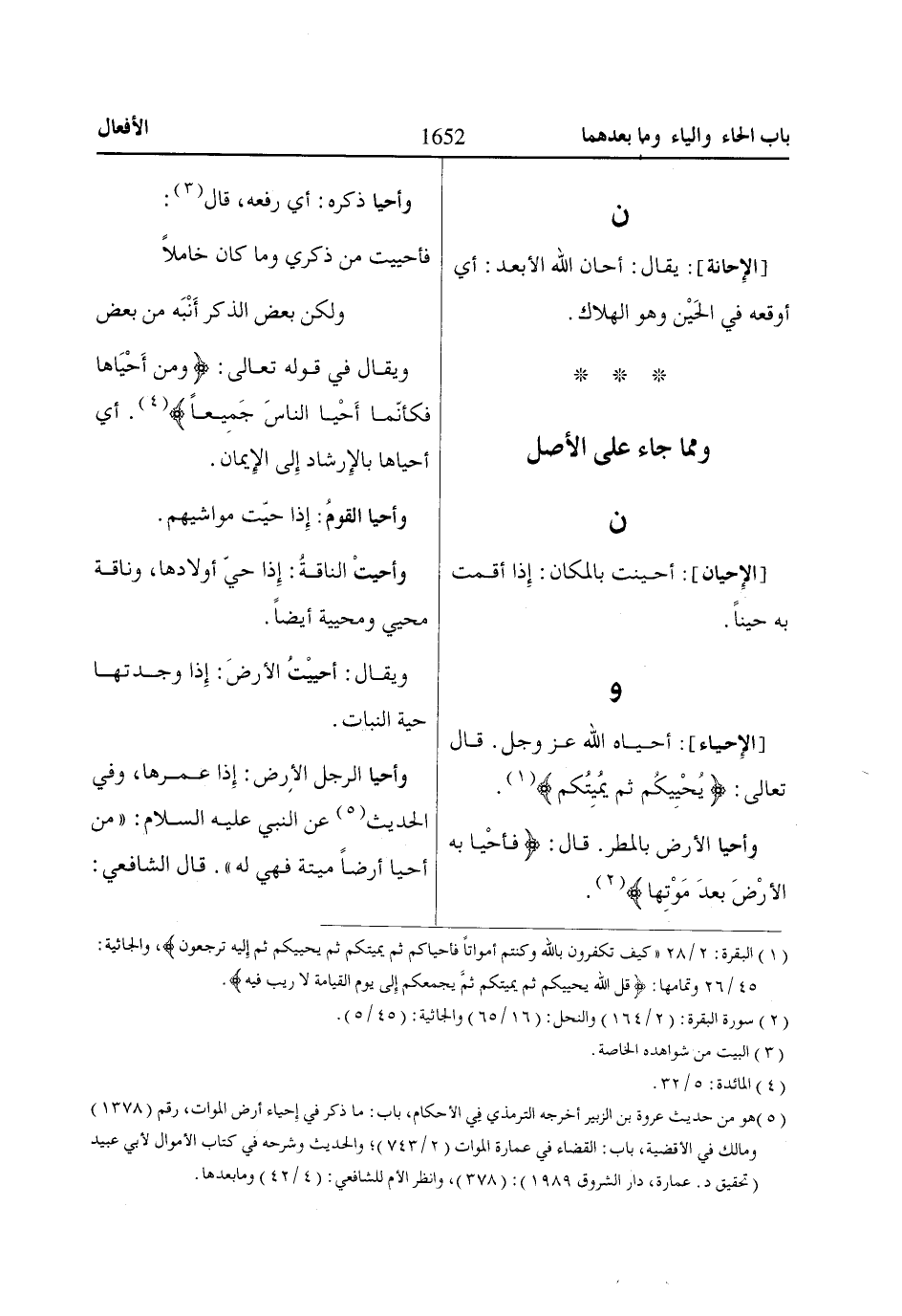 و [الإِحياء]: أحياه الله عز وجل. قال تعالى: يُحْيِيكُمْ ثُمَّ يُمِيتُكُمْ «1».