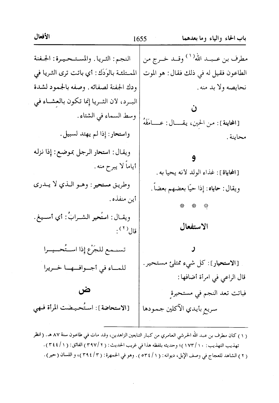 (1) كان مطرف بن عبد الله الحرشي العامري من كبار التابعين الزاهدين، وقد مات في طاعون سنة 87 هـ. (انظر تهذيب التهذيب: 10/ 173)؛ وحديثه بلفظه هذا في غريب الحديث: (2/ 397) الفائق: (1/ 344).