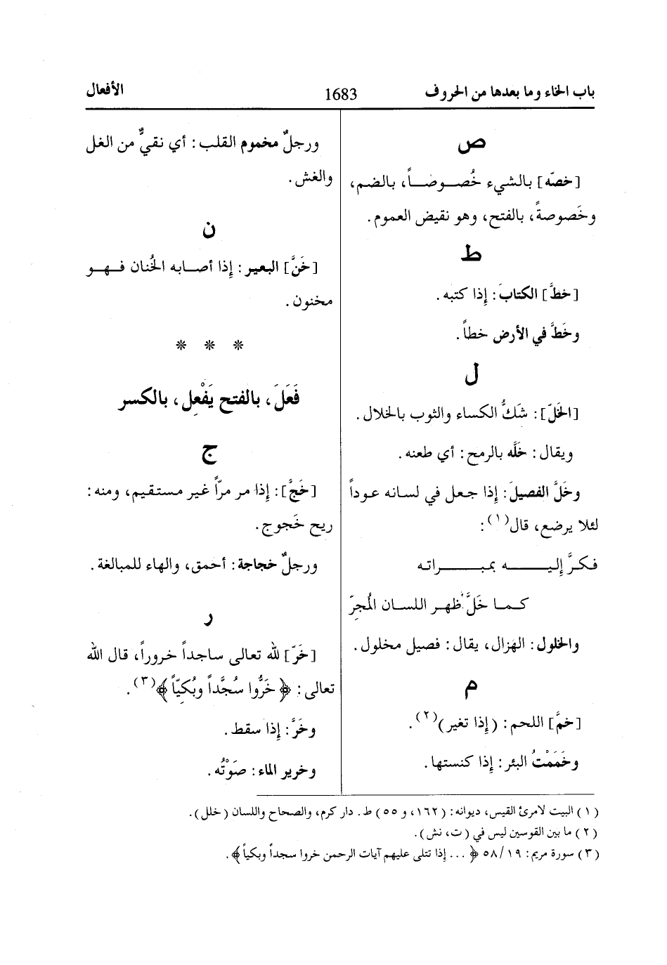 (1) البيت لامرئ القيس، ديوانه: (162، و 55) ط. دار كرم، والصحاح واللسان (خلل).