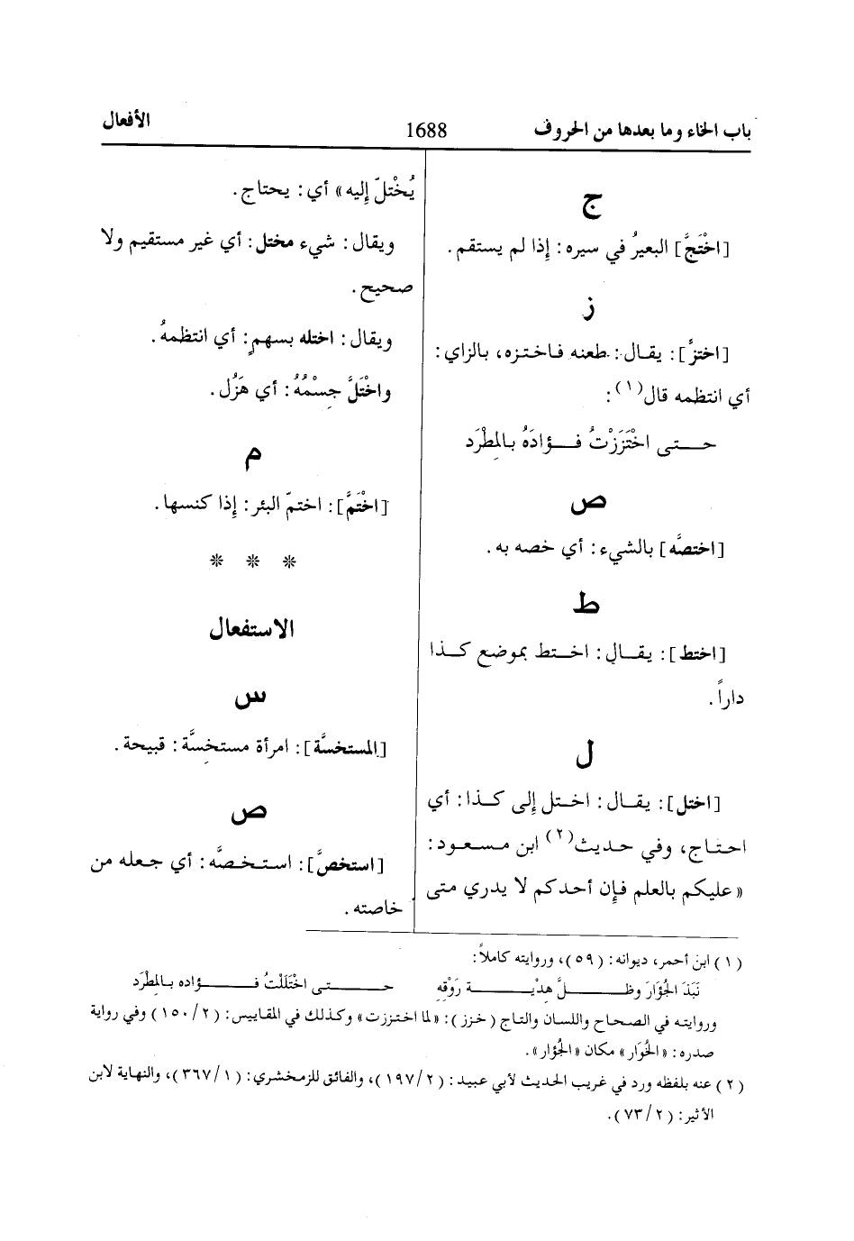 [اختزَّ]: يقال: طعنه فاختزه، بالزاي: