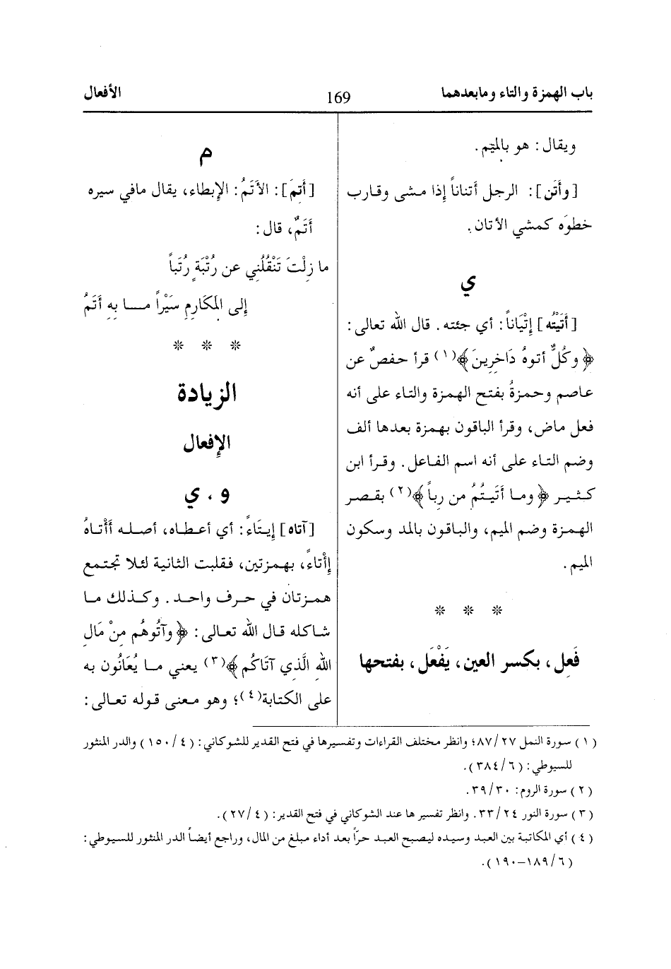 [أَتَيْتُه] إِتْيَاناً: أي جئته. قال اللّاه تعالى: