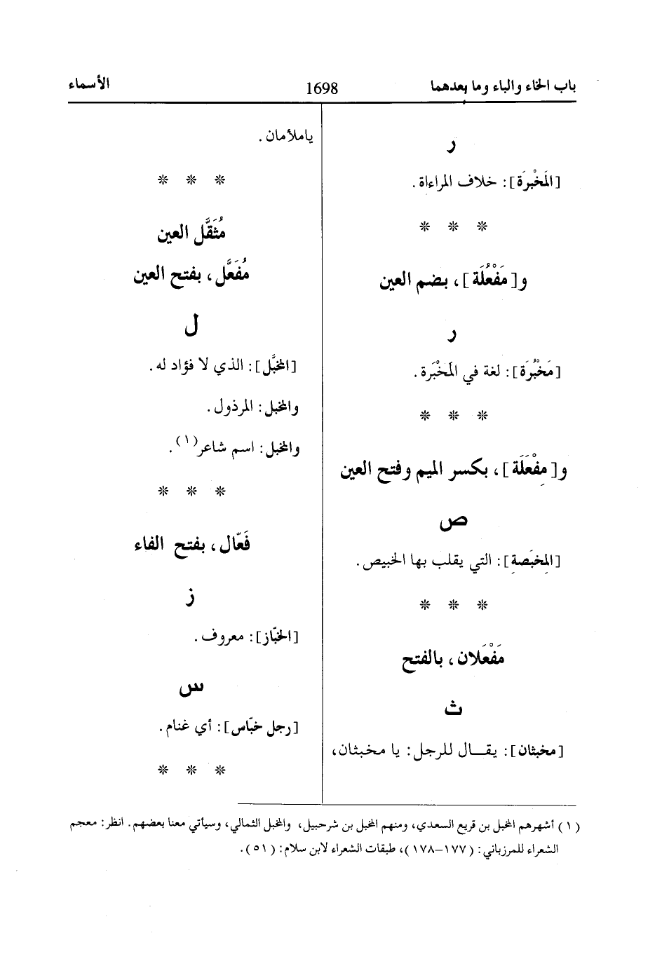 [مخبثان]: يقال للرجل: يا مخبثان، يا ملأمان.
