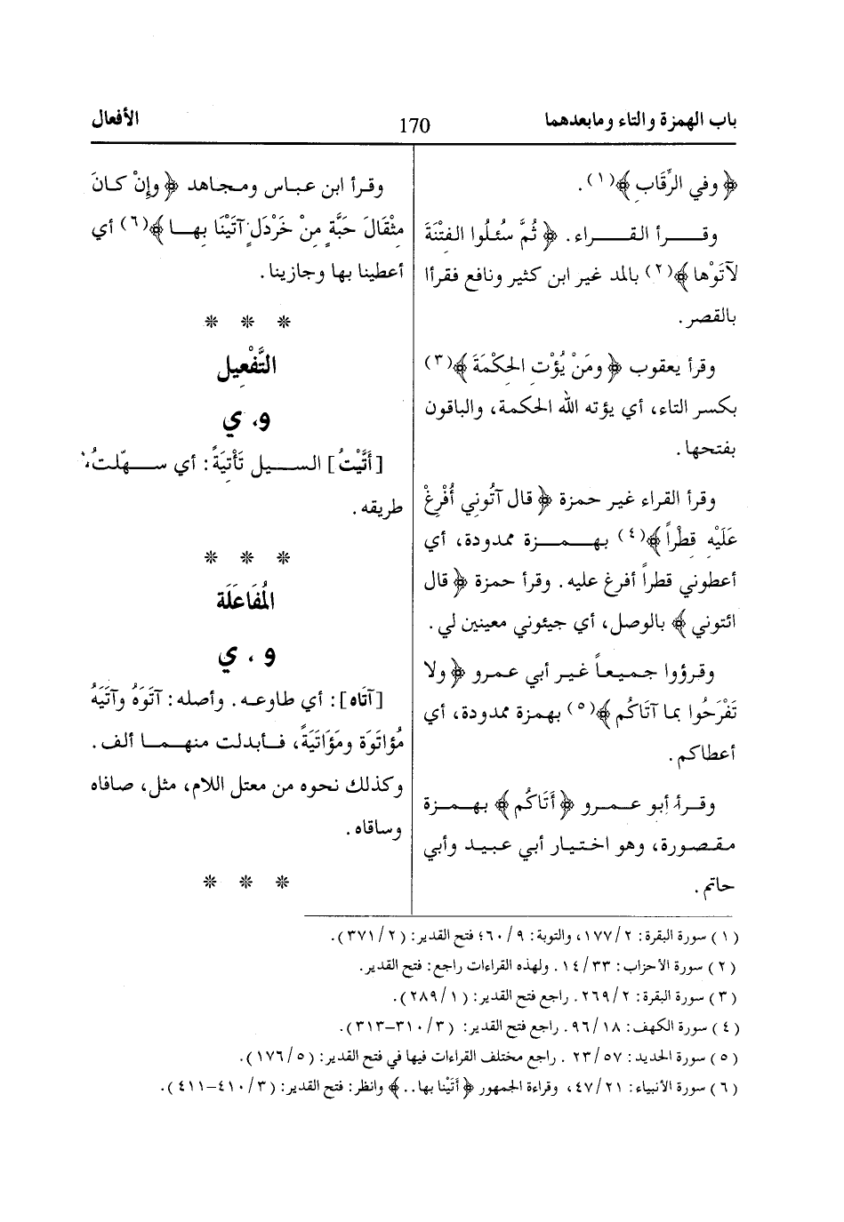 (5) سورة الحديد: 57/ 23. راجع مختلف القراءات فيها في فتح القدير: (5/ 176).