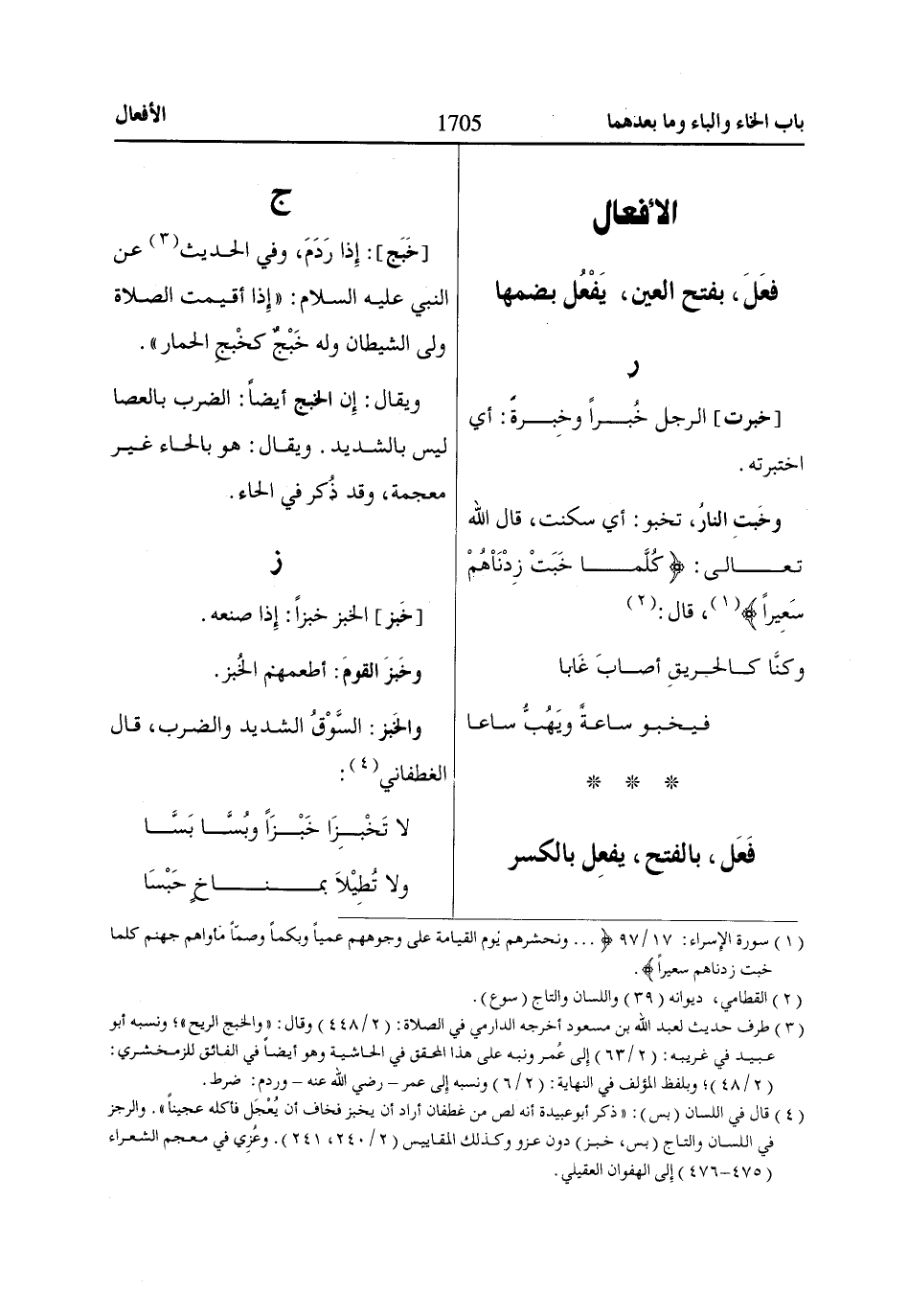 (3) طرف حديث لعبد الله بن مسعود أخرجه الدارمي في الصلاة: (2/ 448) وقال: «والخبج الريح»؛ ونسبه أبو عبيد في غريبه: (2/ 63) إِلى عُمر ونبه على هذا المحقق في الحاشية وهو أيضاً في الفائق للزمخشري: