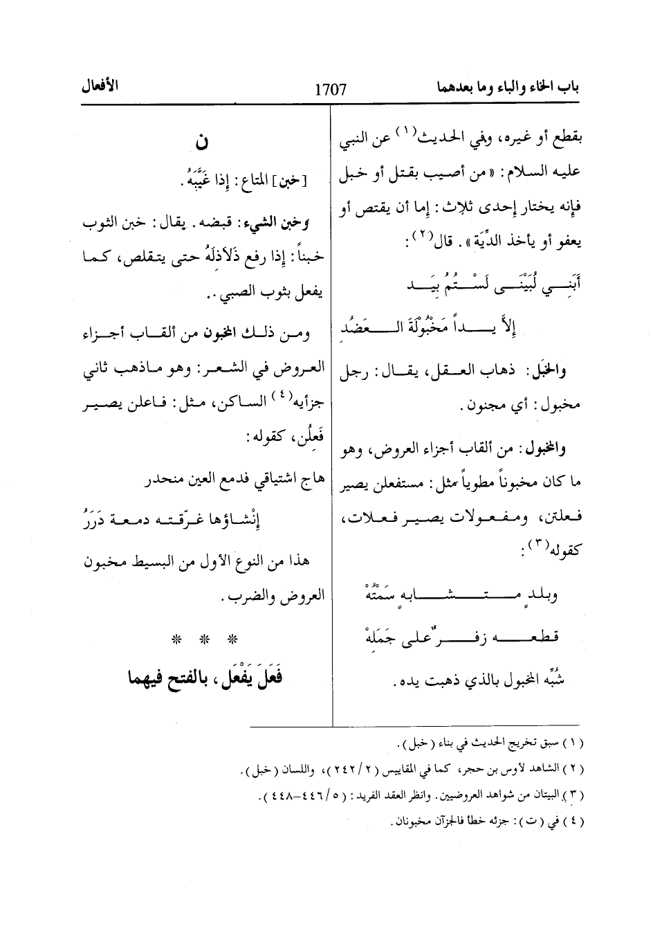 (2) الشاهد لأوس بن حجر، كما في المقاييس (2/ 242)، واللسان (خبل).
