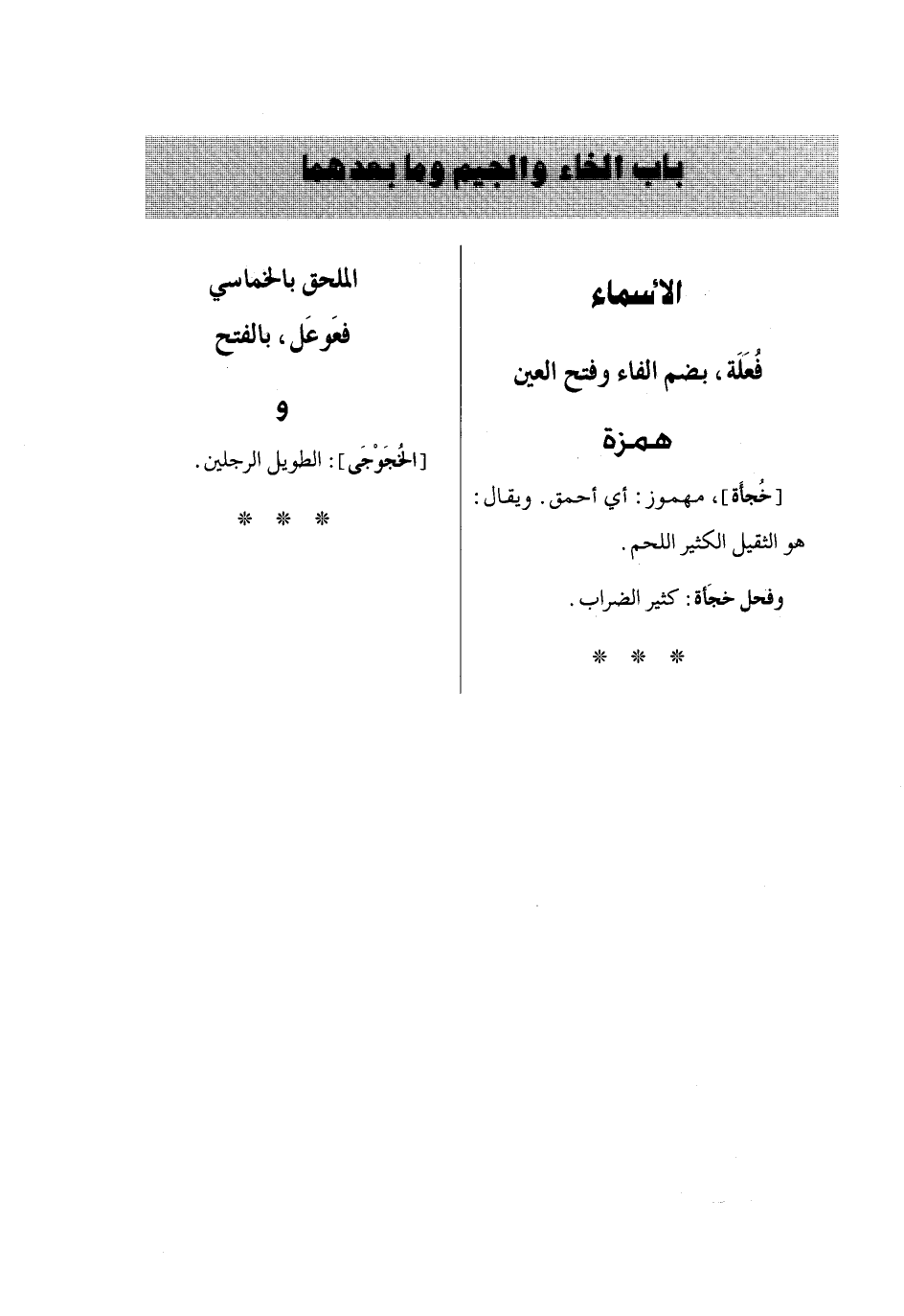باب الخاء والجيم وما بعدهما