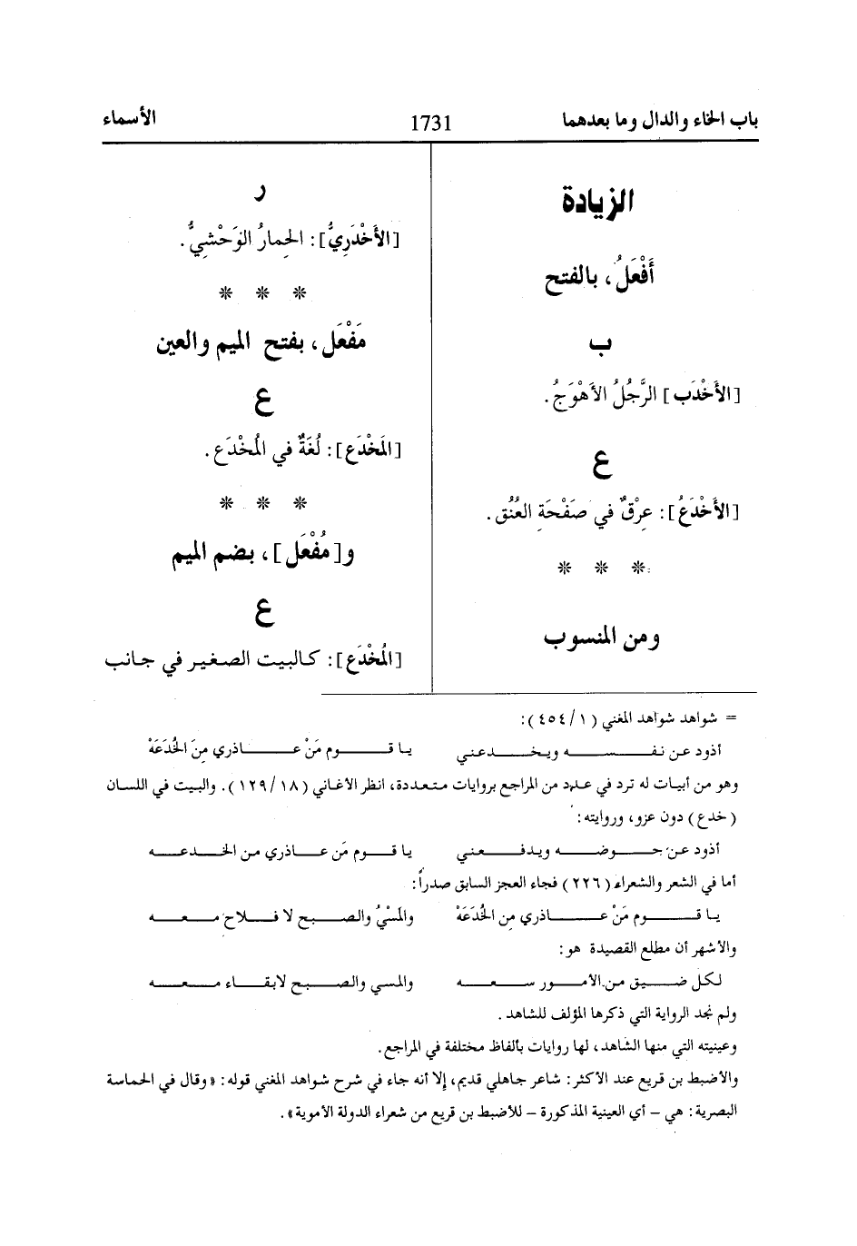 وهو من أبيات له ترد في عدد من المراجع بروايات متعددة، انظر الأغاني (18/ 129). والبيت في اللسان (خدع) دون عزو، وروايته: