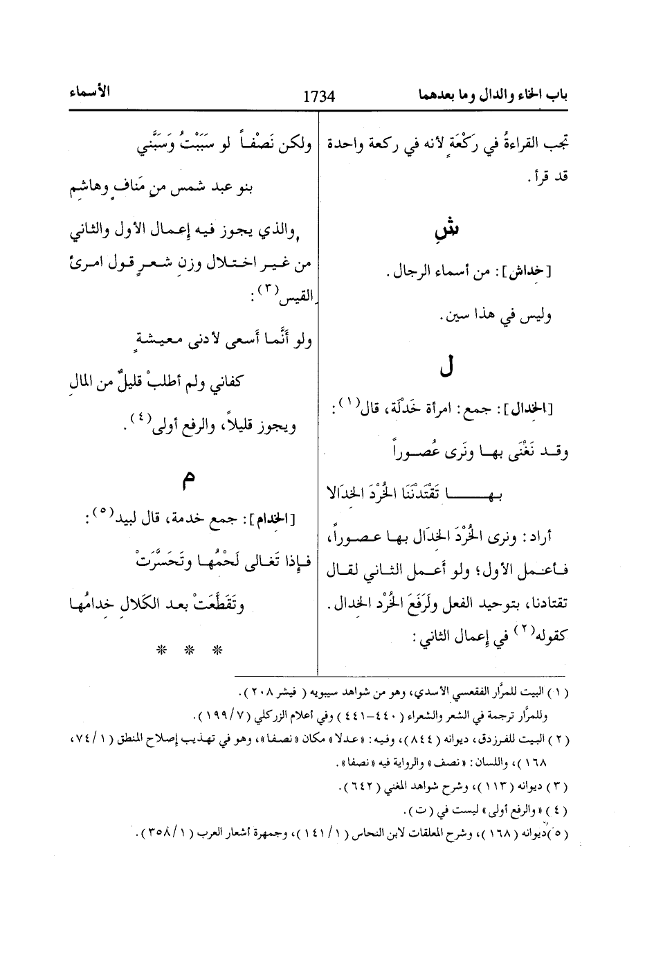 [الخِدام]: جمع خدمة، قال لبيد «5»: