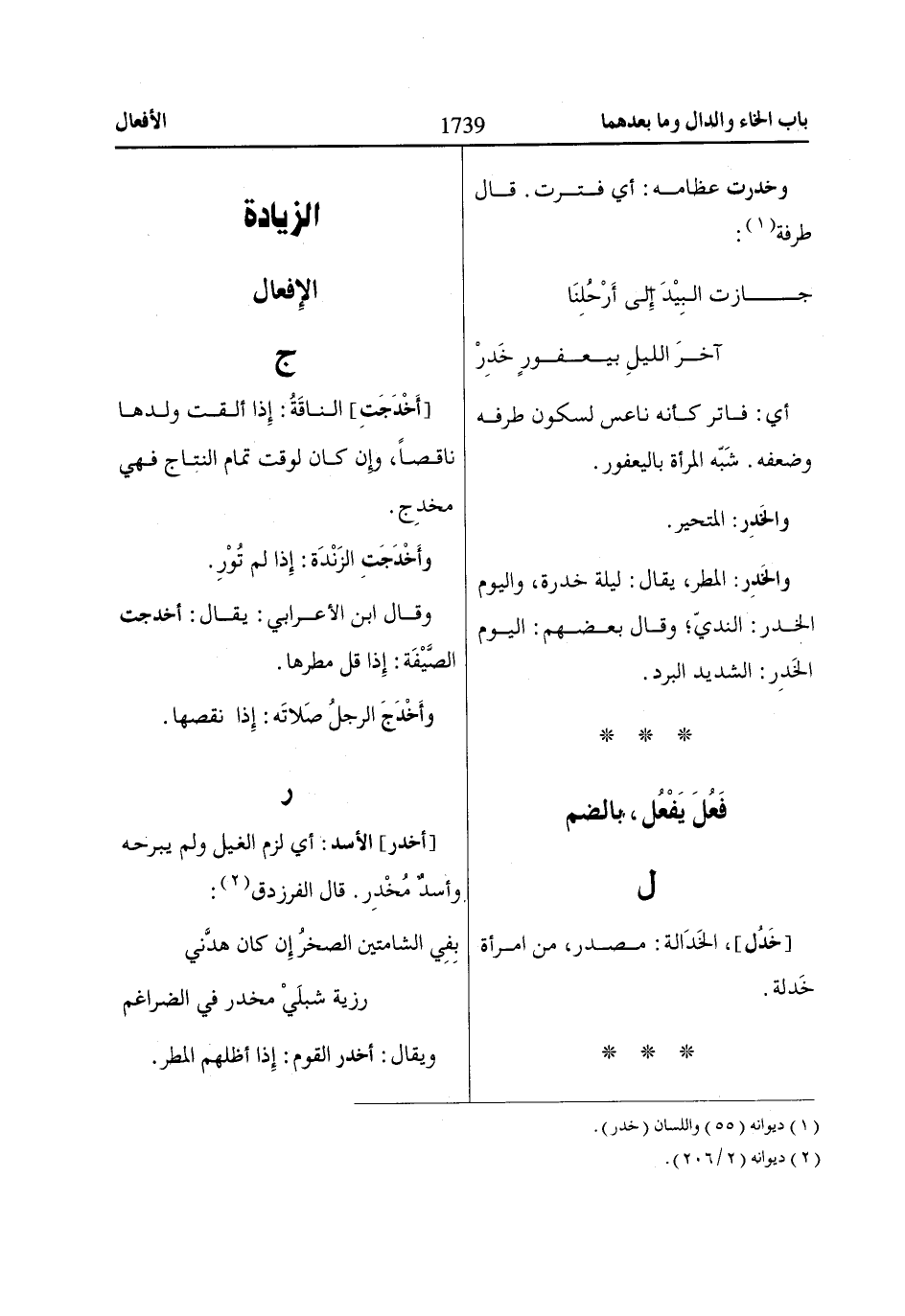 [أخدر] الأسد: أي لزم الغيل ولم يبرحه وأسدٌ مُخْدِر. قال الفرزدق «2»: