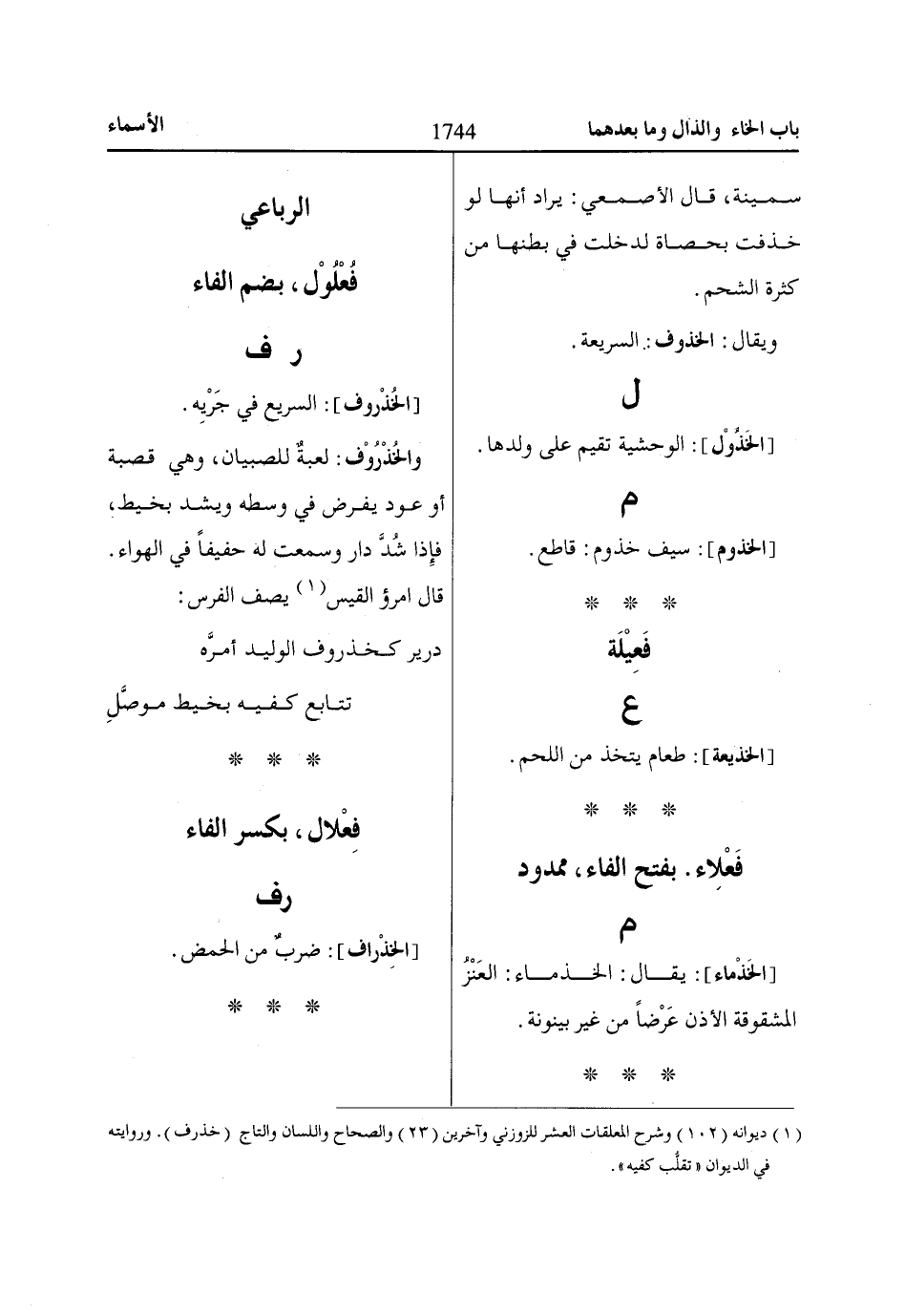 (1) ديوانه (102) وشرح المعلقات العشر للزوزني وآخرين (23) والصحاح واللسان والتاج (خذرف). وروايته في الديوان «تقلُّب كفيه».