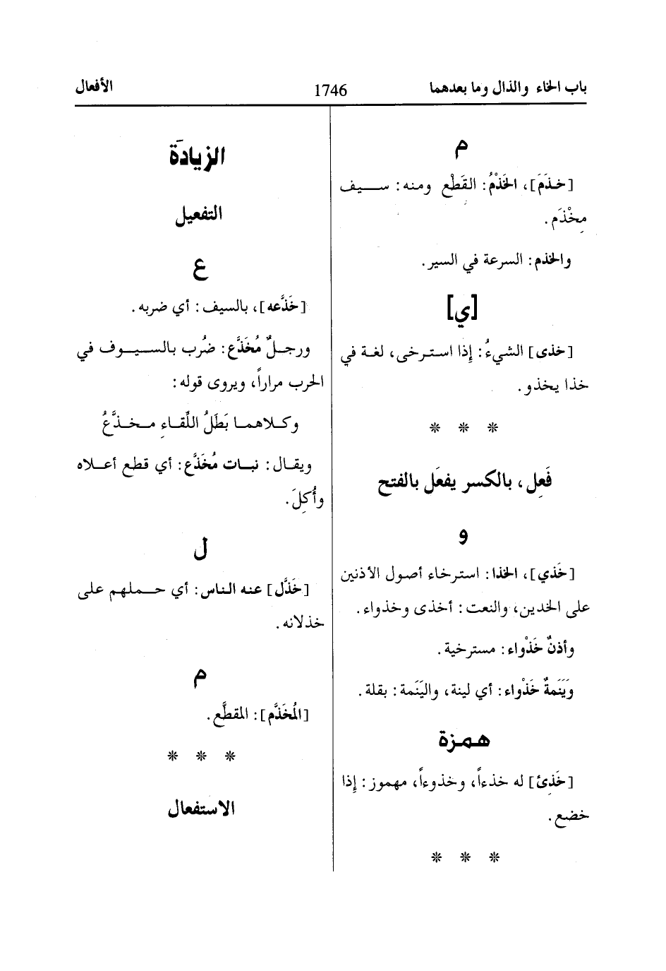 [خَذَمَ]، الخَذْمُ: القَطْع ومنه: سيف مِخْذَم.