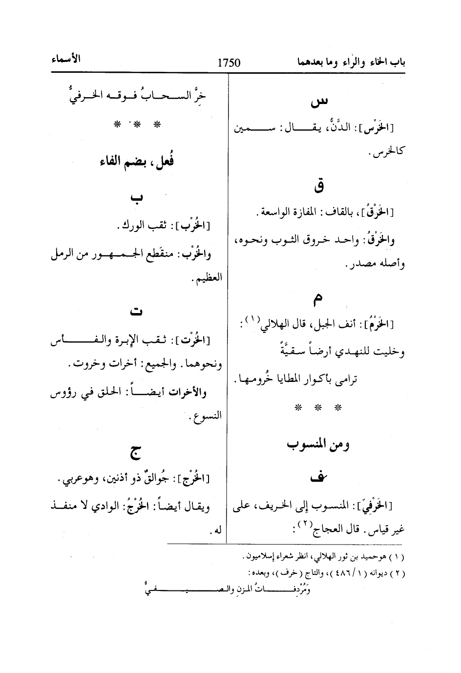 (2) ديوانه (1/ 486)، والتاج (خرف)، وبعده: