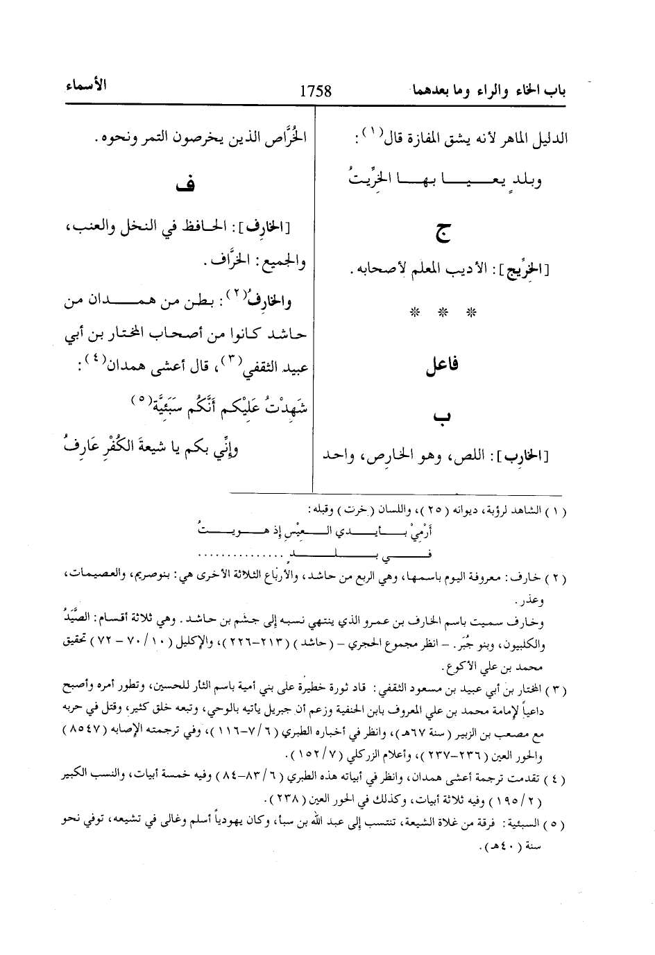 والخارِفُ «2»: بطن من همدان من حاشد كانوا من أصحاب المختار بن أبي عبيد الثقفي «3»، قال أعشى همدان «4»: