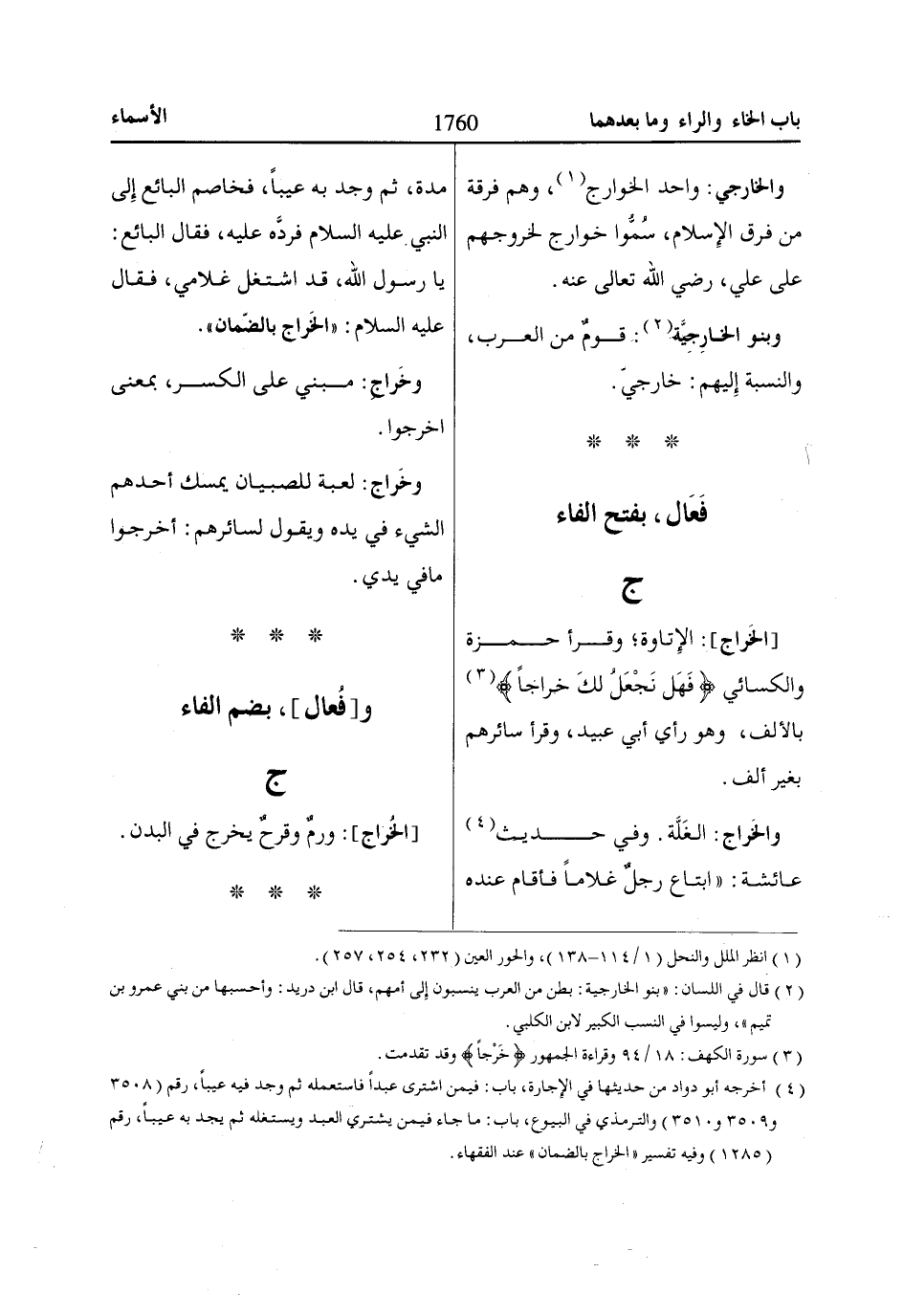 والخارجي: واحد الخوارج «1»، وهم فرقة من فرق الإِسلام، سُمُّوا خوارج لخروجهم على علي، رضي الله تعالى عنه.