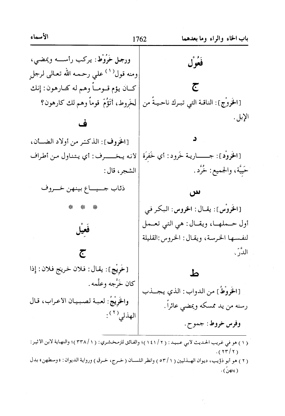 (2) هو أبو ذؤيب، ديوان الهذليين (1/ 53) وانظر اللسان (خرج، خرق) ورواية الديوان: