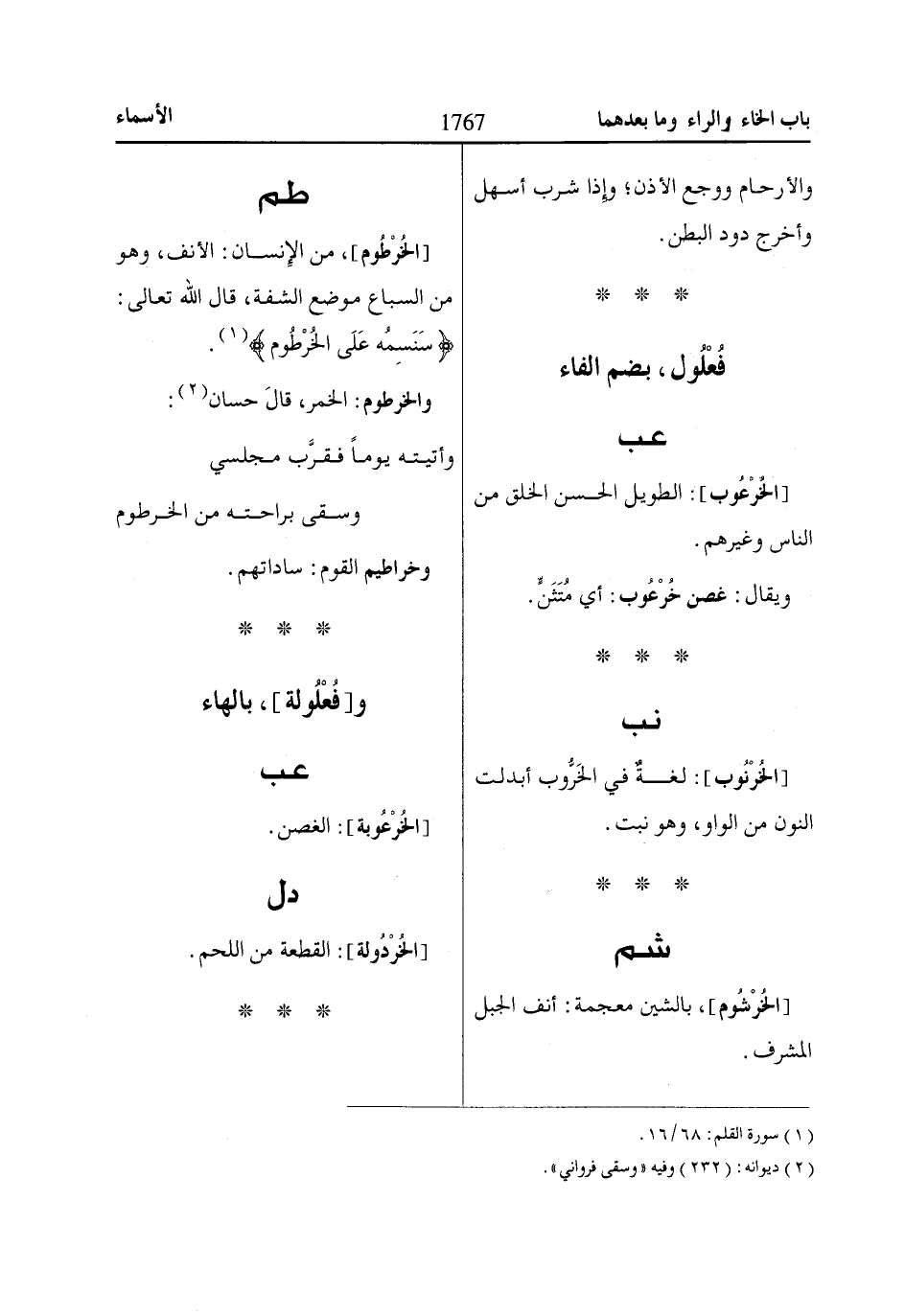 [الخُرْعُوب]: الطويل الحسن الخلق من الناس وغيرهم.
