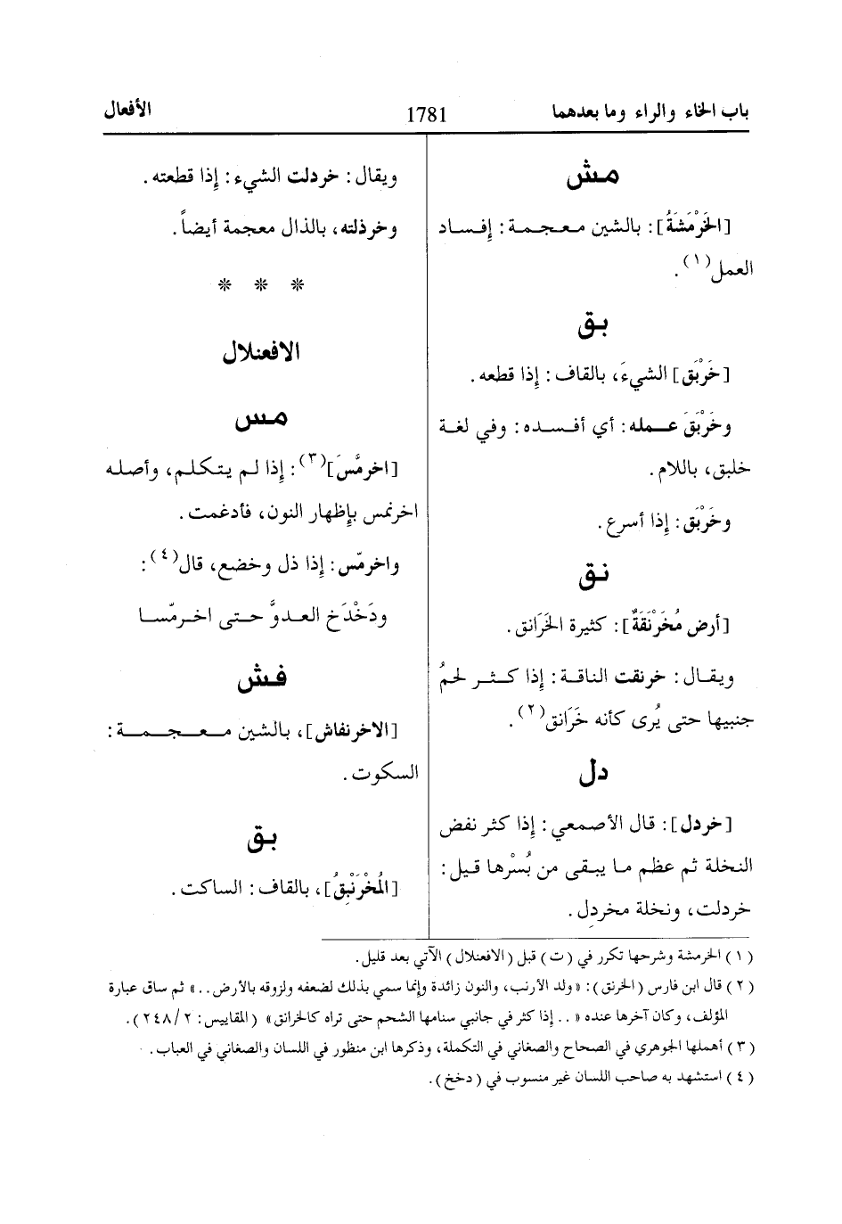 (1) الخرمشة وشرحها تكرر في (ت) قبل (الافعنلال) الآتي بعد قليل.