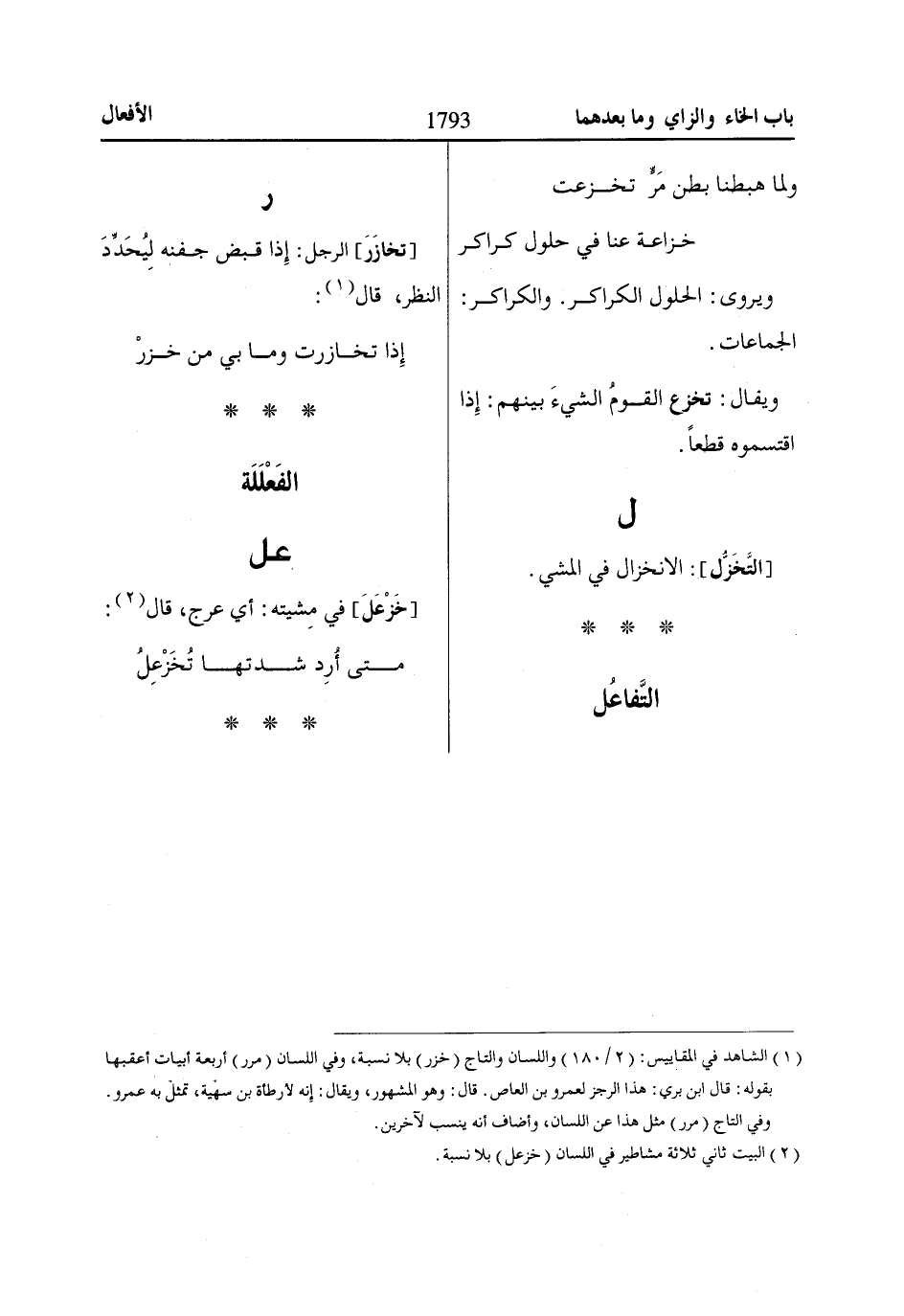 [تخازَرَ] الرجل: إِذا قبض جفنه لِيُحَدِّدَ النظر، قال «1»: