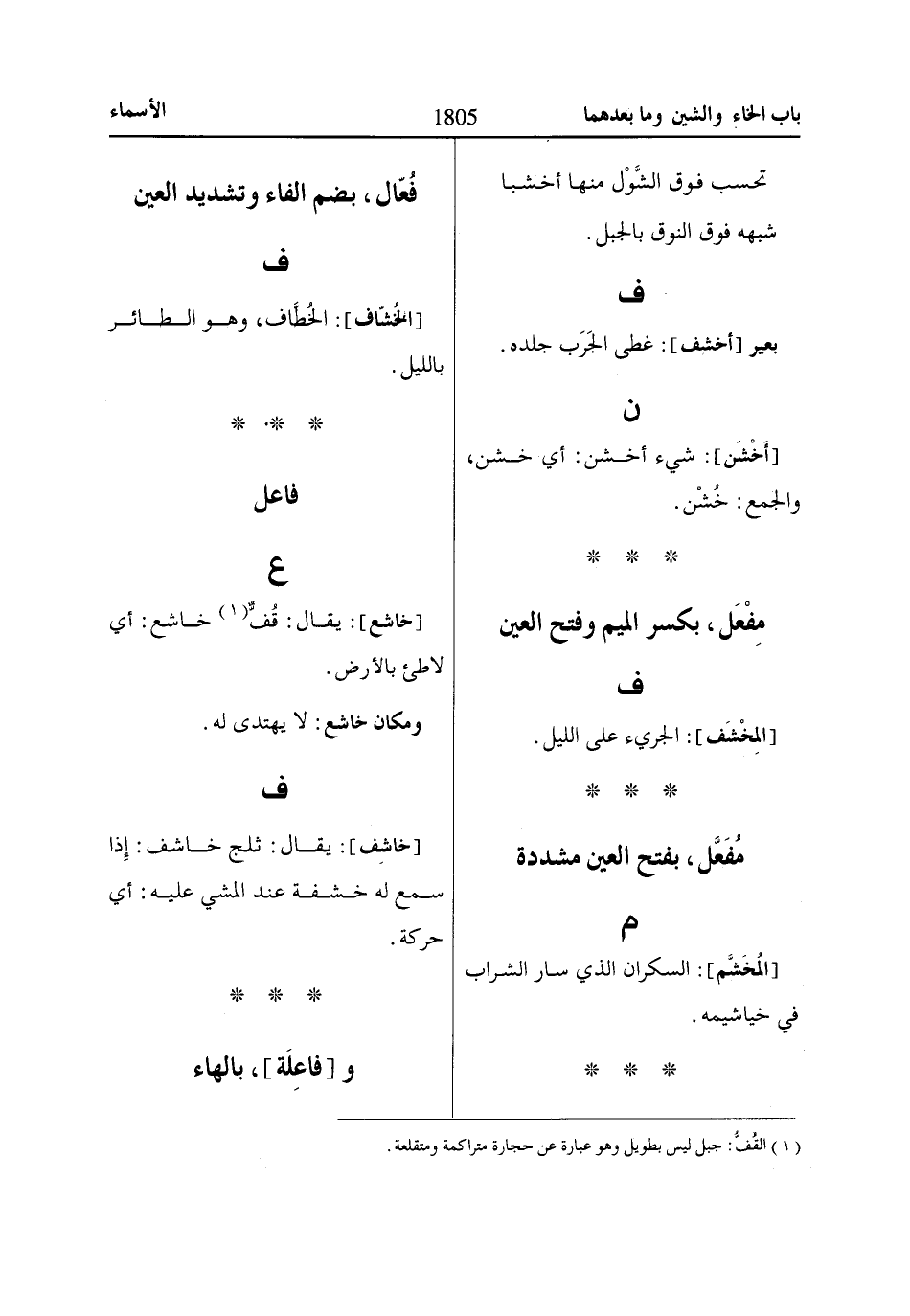 [أَخْشَن]: شيء أخشن: أي خشن، والجمع: خُشْن.