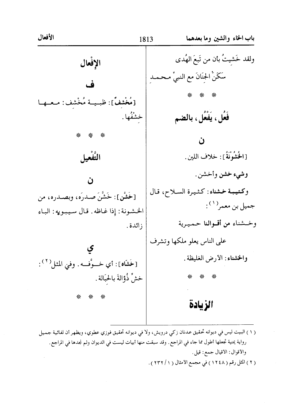 [خَشَّن]: خَشَّنَ صدرَه، وبصدره، من الخشونة: إِذا غاظه. قال سيبويه: الباء زائدة.