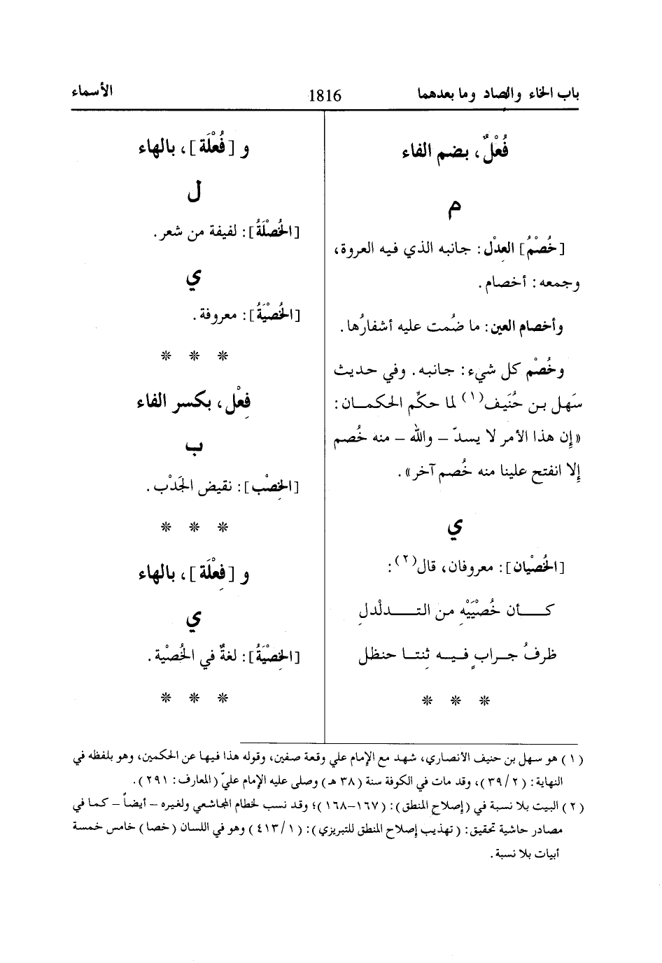 (2) البيت بلا نسبة في (إِصلاح المنطق): (167 - 168)؛ وقد نسب لخطام المجاشعي ولغيره- أيضاً- كما في مصادر حاشية تحقيق: (تهذيب إِصلاح المنطق للتبريزي): (1/ 413) وهو في اللسان (خصا) خامس خمسة أبيات بلا نسبة.