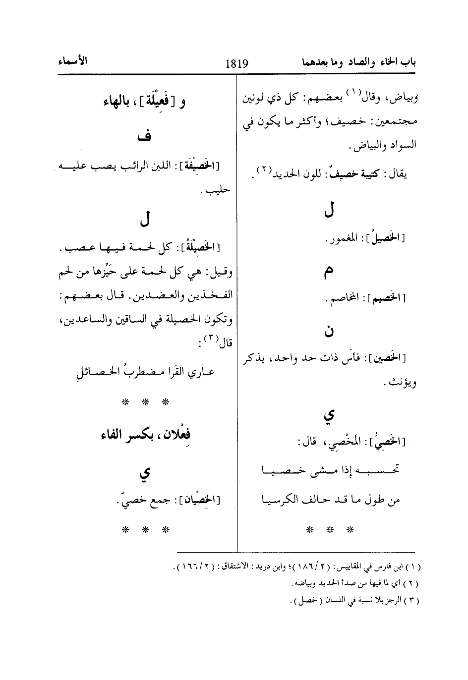 (3) الرجز بلا نسبة في اللسان (خصل).