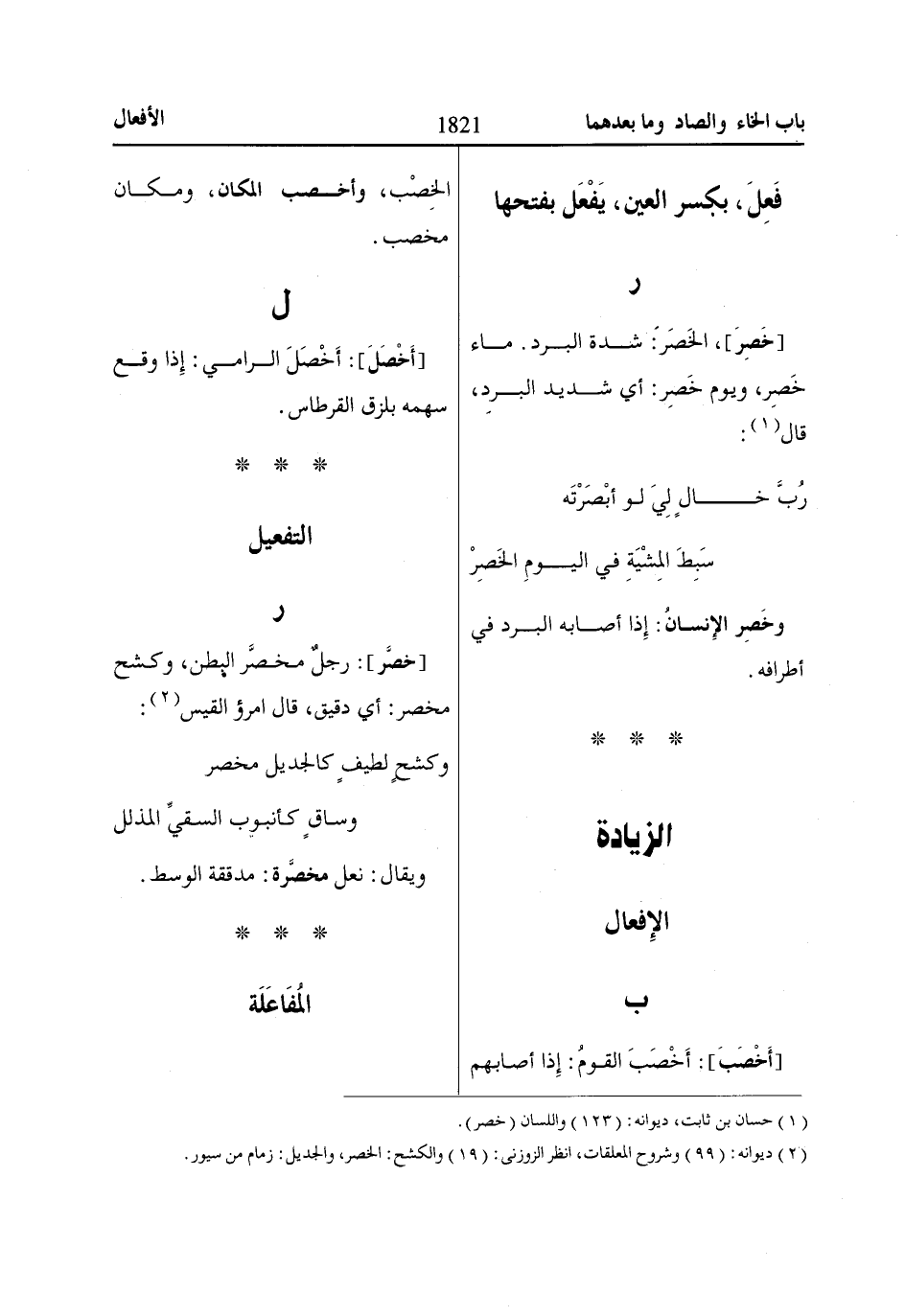 (1) حسان بن ثابت، ديوانه: (123) واللسان (خصر).
