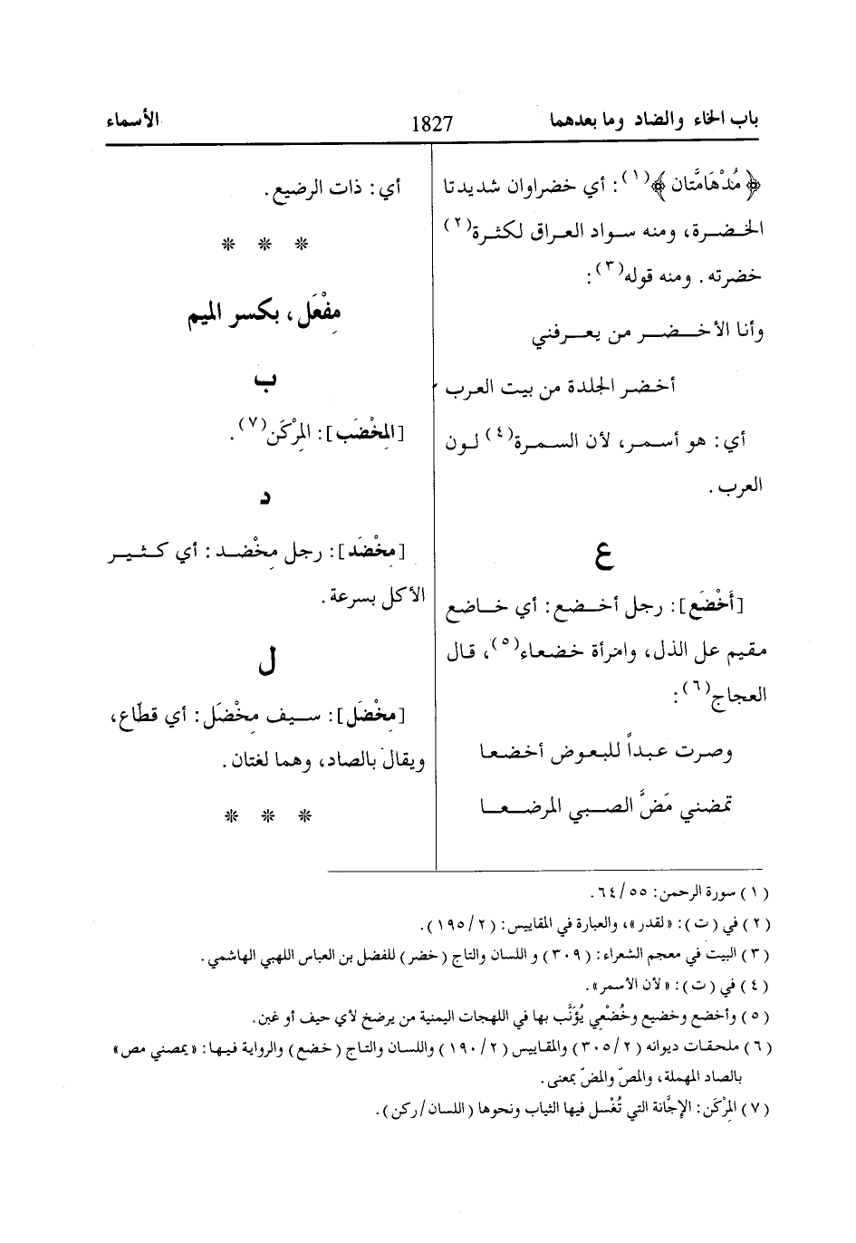 (6) ملحقات ديوانه (2/ 305) والمقاييس (2/ 190) واللسان والتاج (خضع) والرواية فيها: «يمصني مص» بالصاد المهملة، والمصّ والمضّ بمعنى.