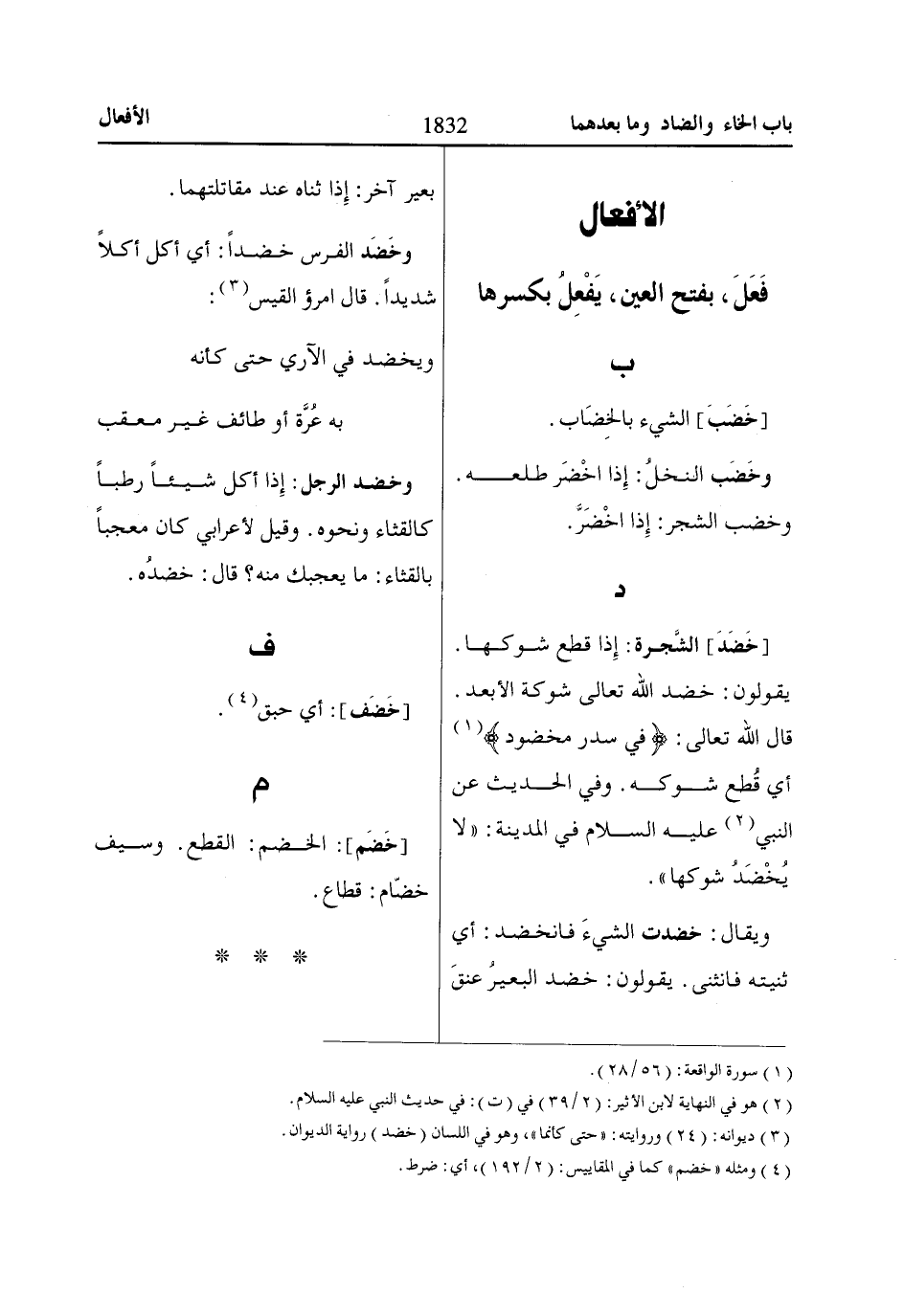 [خَضَدَ] الشَّجرة: إِذا قطع شوكها.
