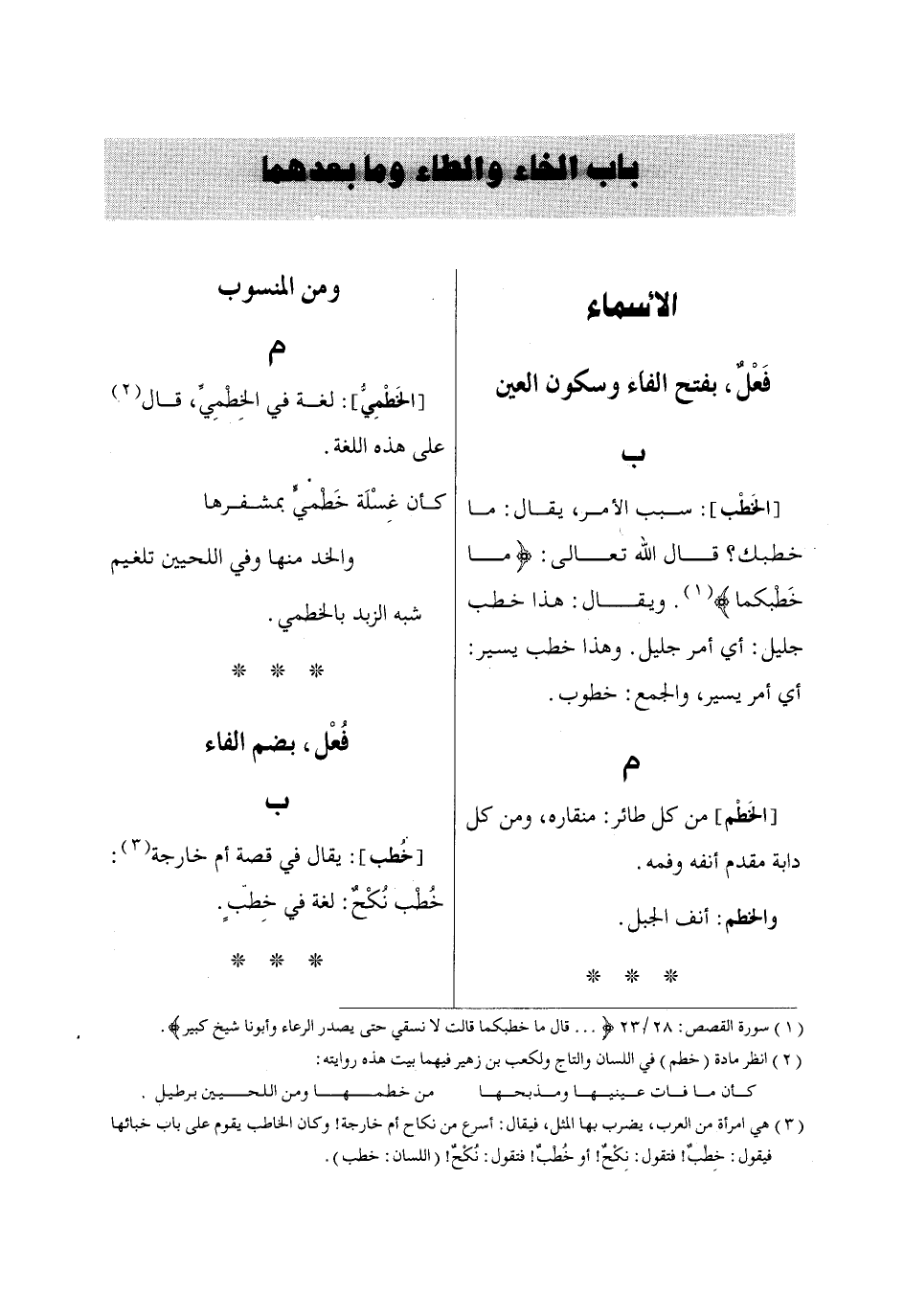 باب الخاء والطاء وما بعدهما