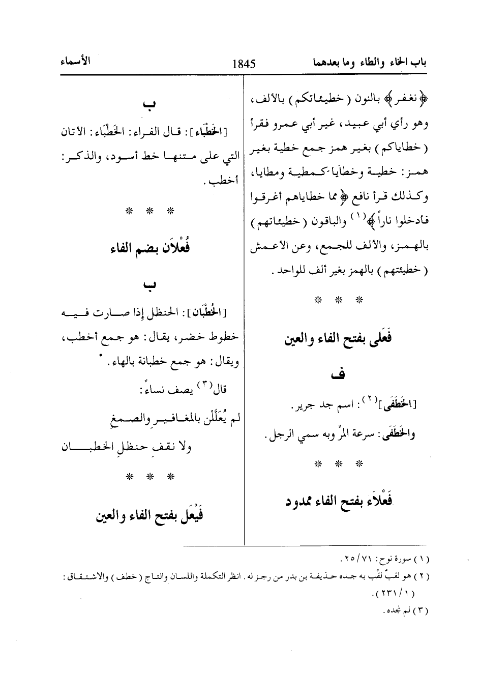(2) هو لقبٌ لقِّب به جده حذيفة بن بدر من رجز له. انظر التكملة واللسان والتاج (خطف) والاشتقاق: