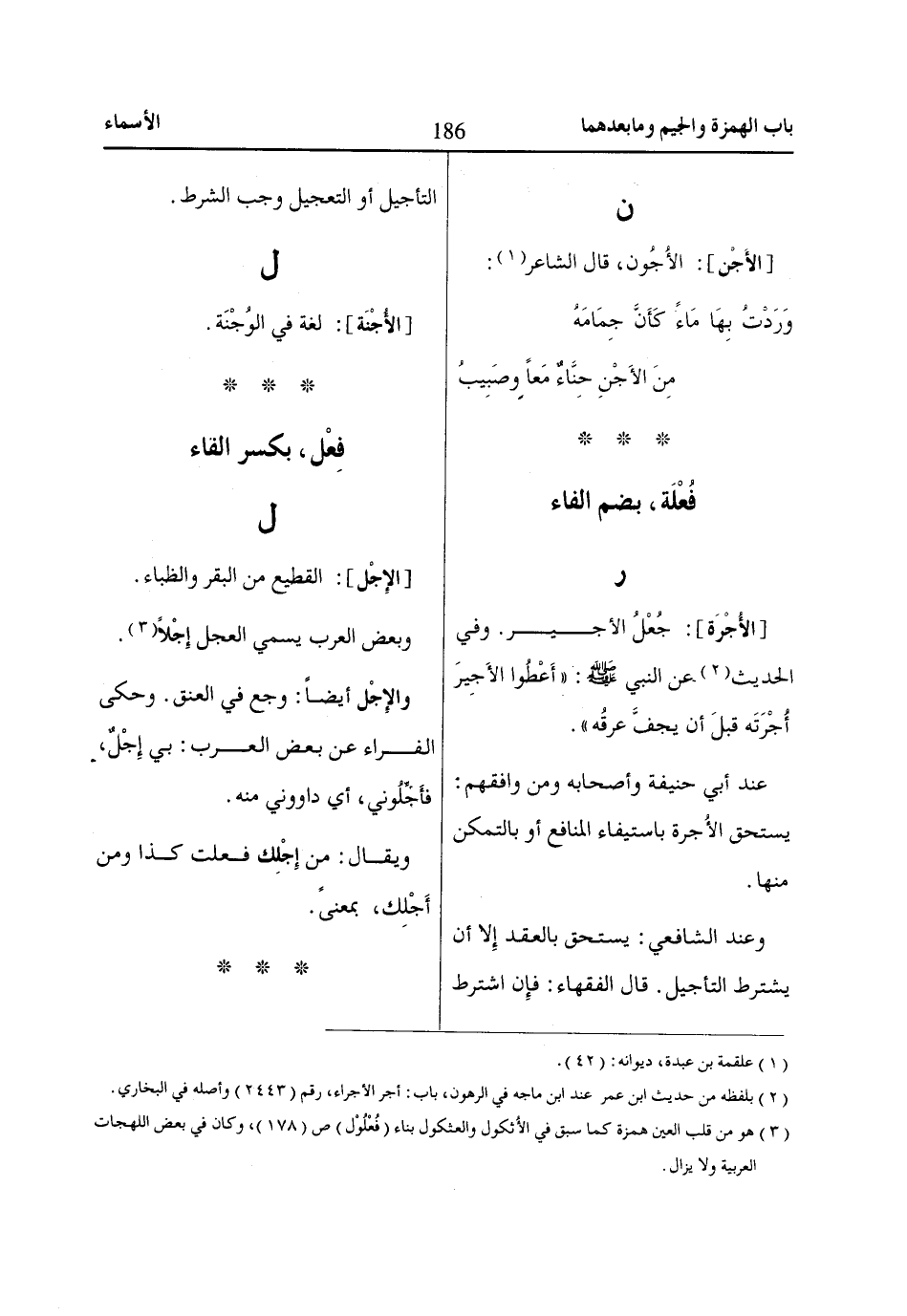 [الأَجْن]: الأُجُون، قال الشاعر «1»: