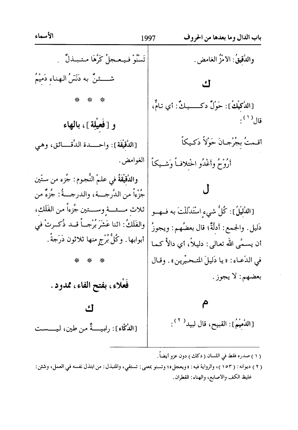 [الدَّكِيكُ]: حَوْلٌ دكيكٌ: أي تامٌّ، قال «1»: