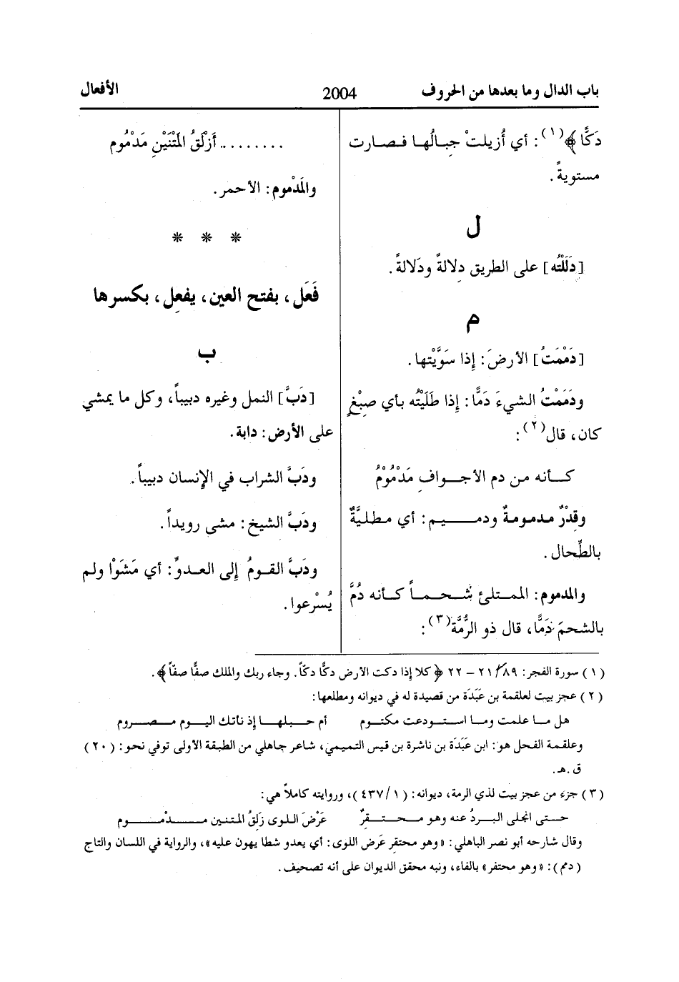 وقال شارحه أبو نصر الباهلي: «وهو محتقِر عَرض اللوى: أي يعدو شطا يهون عليه»، والرواية في اللسان والتاج (دمم): «وهو محتفر» بالفاء، ونبه محقق الديوان على أنه تصحيف.
