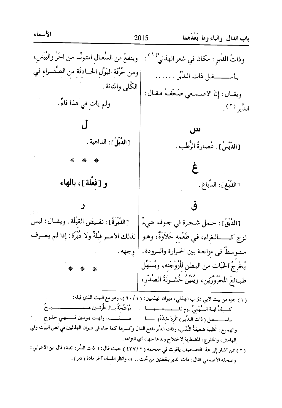 (2) ممن أشار إِلى هذا التصحيف ياقوت في معجمه (2/ 437) حيث قال: «ذات الدِّبر: ثنية، قال ابن الأعرابي: