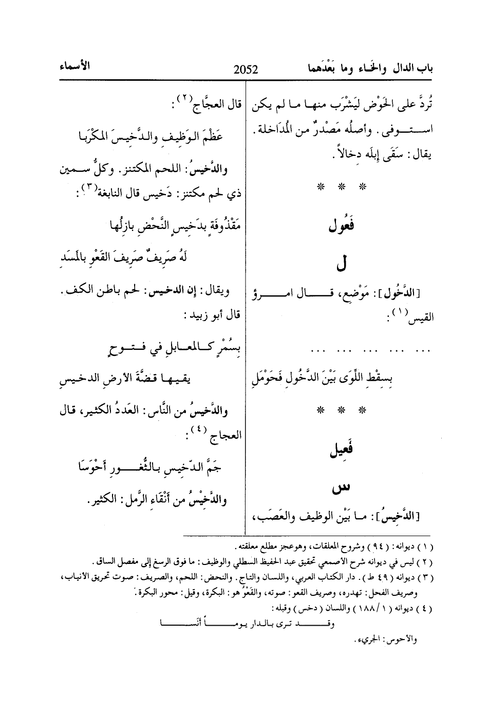 [الدَّخِيسُ]: ما بَيْن الوظيف والعَصَب، قال العجَّاج «2»: