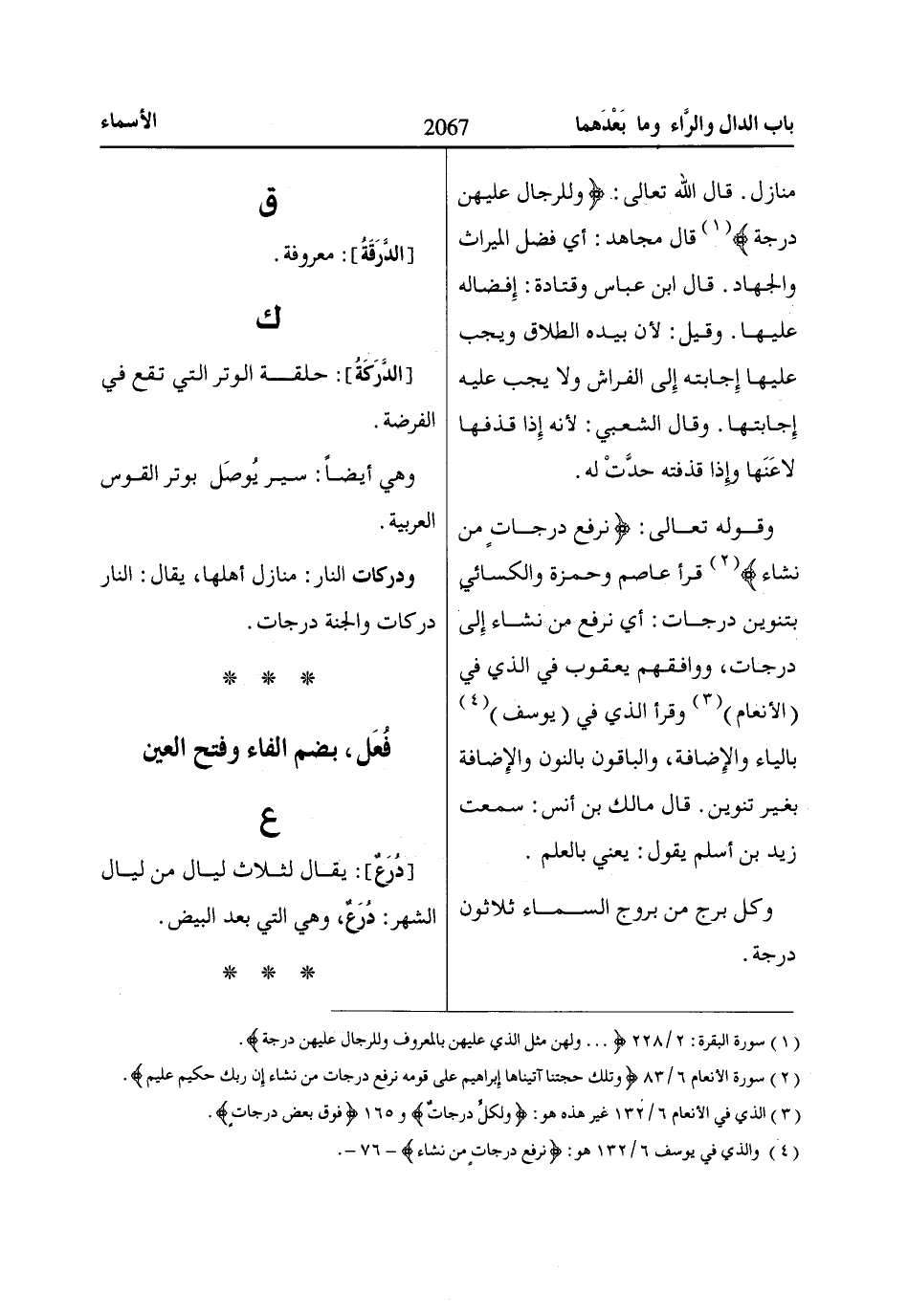 (3) الذي في الأنعام 6/ 132 غير هذه هو: وَلِكُلٍّ دَرَجااتٌ و 165 فَوْقَ بَعْضٍ دَرَجااتٍ.