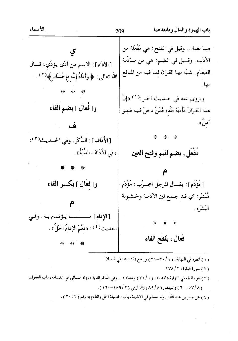 (1) انظره في النهاية: (1/ 30 - 31) وراجع «أدب»: في اللسان.