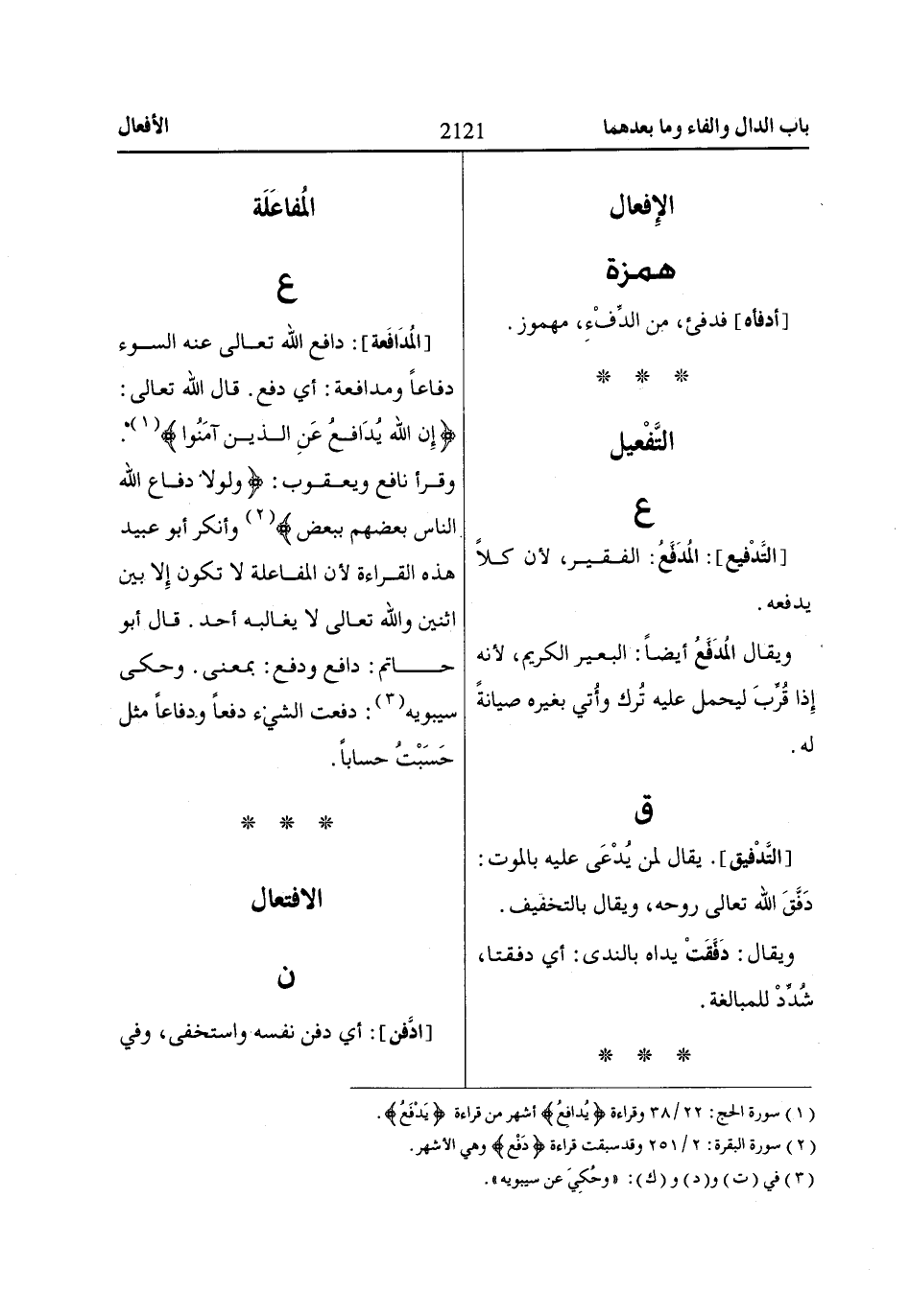 (2) سورة البقرة: 2/ 251 وقد سبقت قراءة دَفْعُ* وهي الأشهر.
