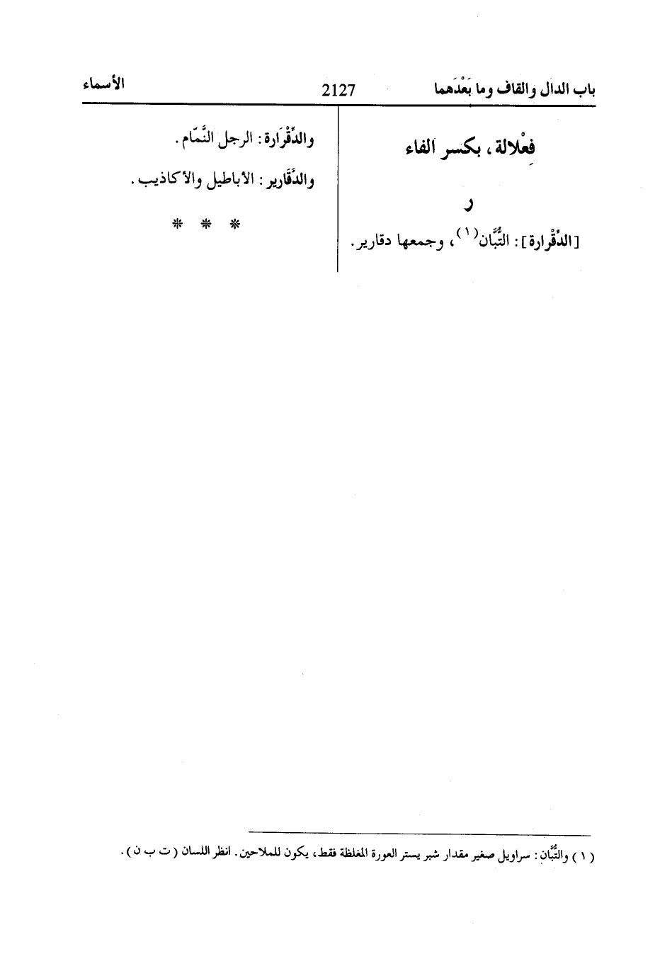 [الدِّقْرارة]: التُّبَّان «1»، وجمعها دقارير.