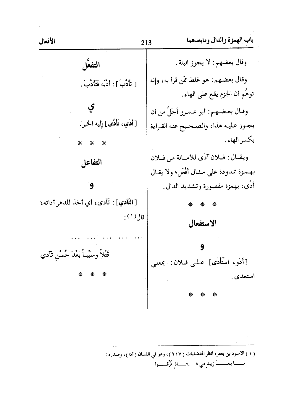 (1) الأسود بن يعفر، انظر المفضليات (217)، وهو في اللسان (أدا)، وصدره: