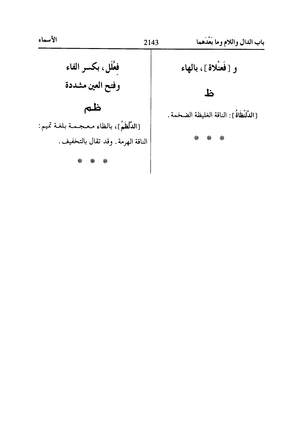 [الدِّلَّظَمُ]، بالظاء معجمة بلغة تميم: