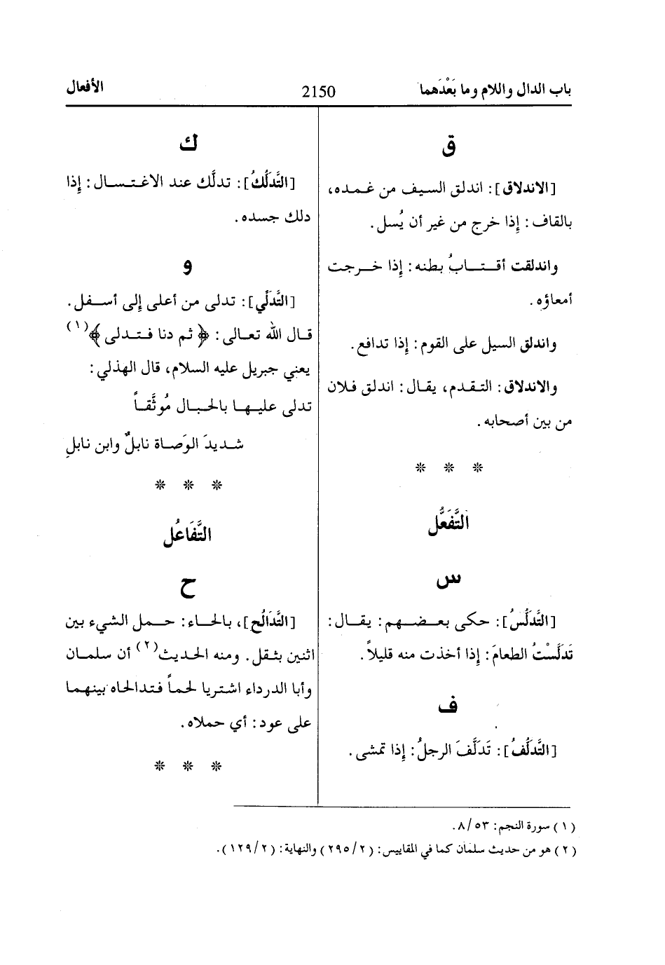 قال الله تعالى: ثُمَّ دَناا فَتَدَلّاى «1» يعني جبريل عليه السلام، قال الهذلي: