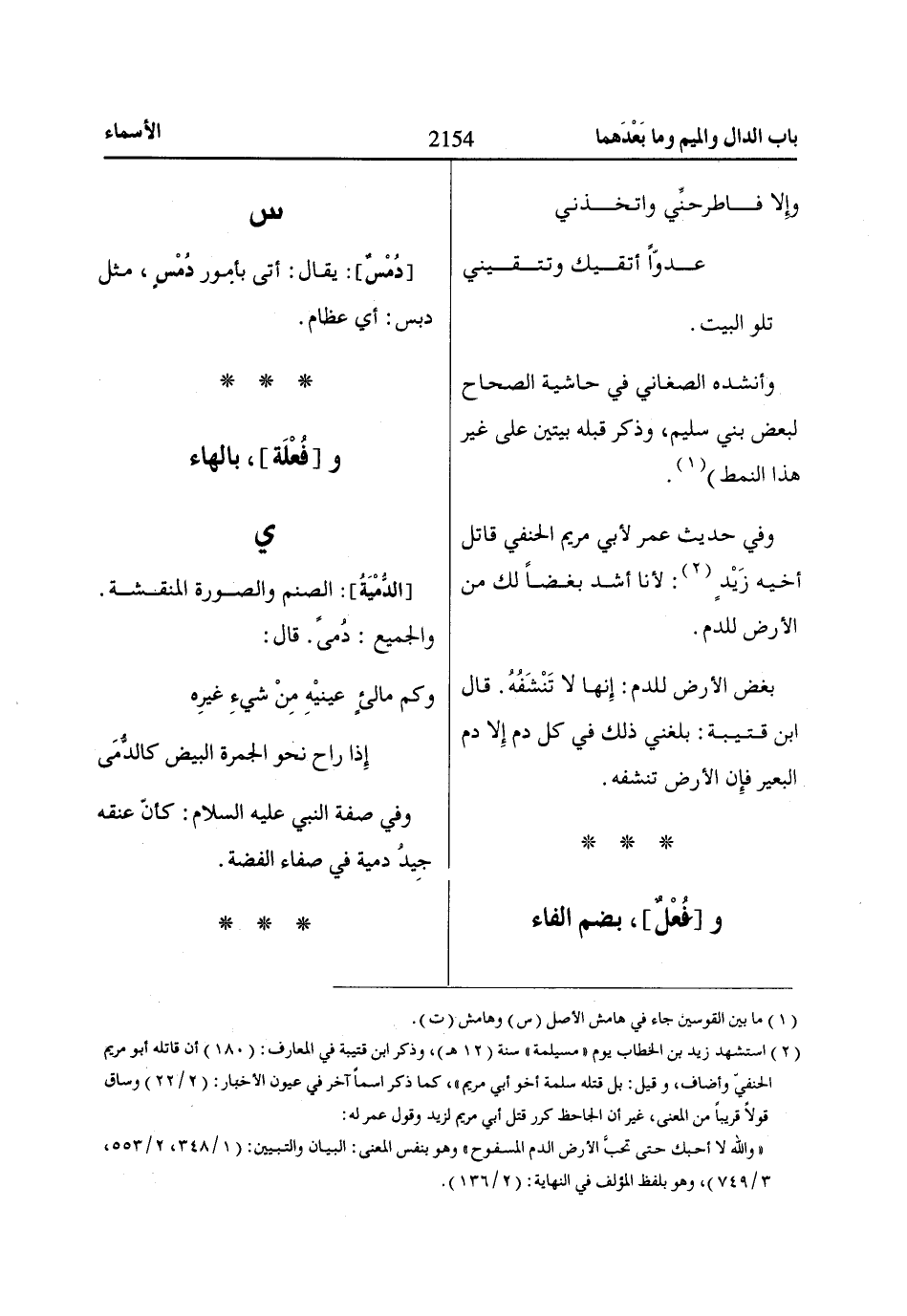 وأنشده الصغاني في حاشية الصحاح لبعض بني سليم، وذكر قبله بيتين على غير هذا النمط) «1».