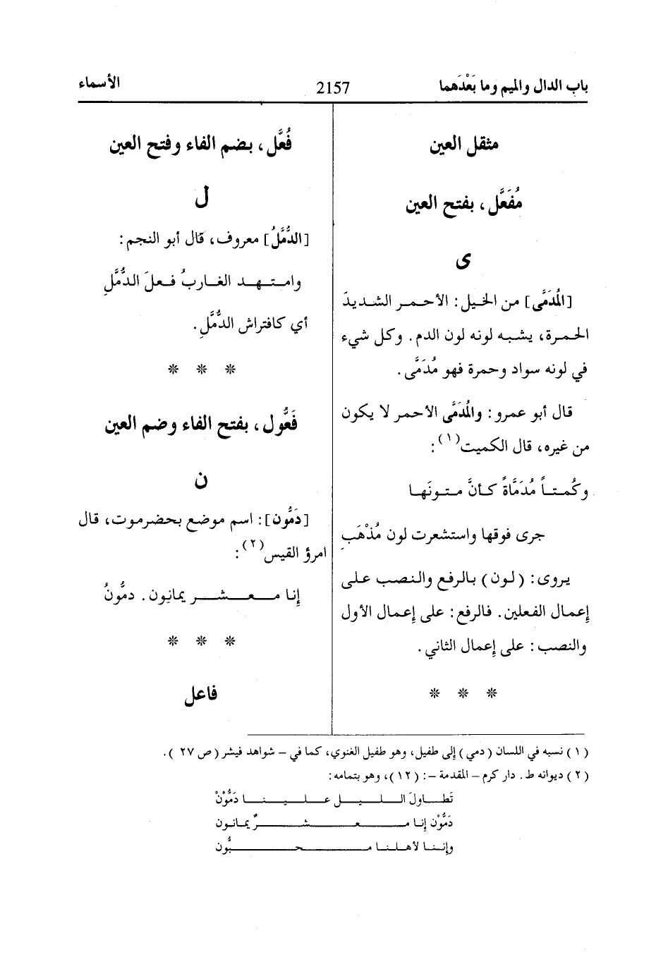 (1) نسبه في اللسان (دمي) إلى طفيل، وهو طفيل الغنوي، كما في- شواهد فيشر (ص 27).