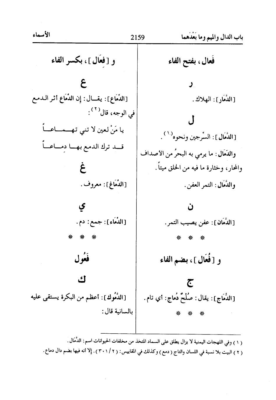 (2) البيت بلا نسبة في اللسان والتاج (دمع) وكذلك في المقاييس: (2/ 301). إلا أنه فيها بضم دال دماع.