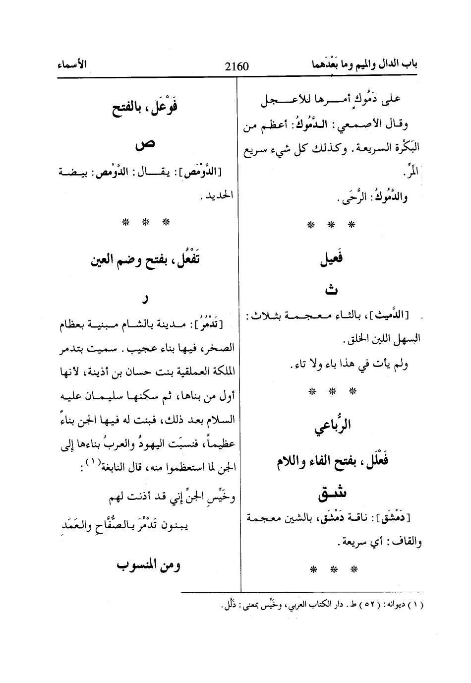 وخَيِّسِ الجنِّ إِني قد أذنت لهم ... يبنون تَدْمُرَ بالصُّفَّاحِ والعَمَدِ
