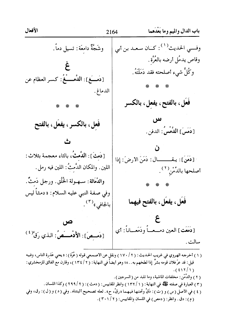 (3) العبارة في صفته صلّى الله عليه وسلم في النهاية: (1/ 132) وانظر المقاييس: (دمث): (2/ 299) وكذا اللسان.